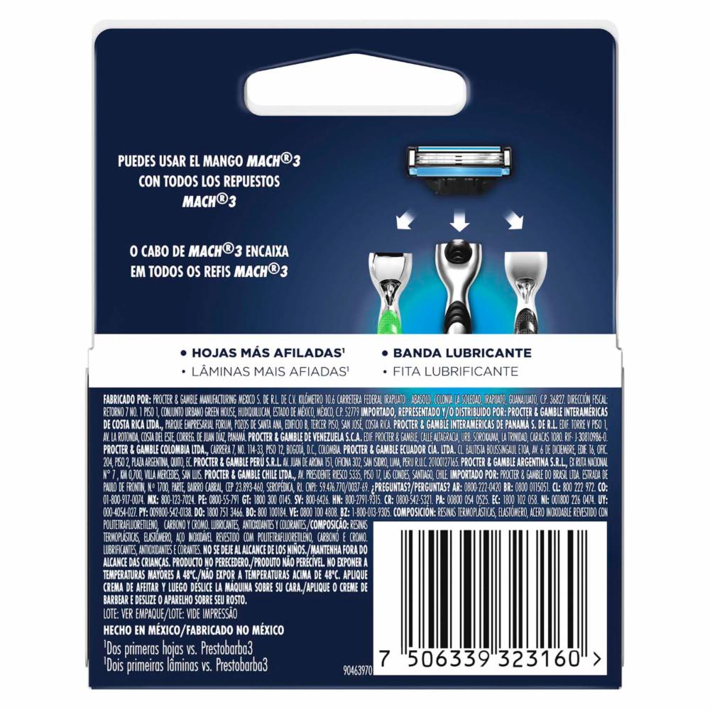 • Los repuestos para la máquina de afeitar gillette mach3 cuentan con 3 hojas más fuertes que el acero, que se mantienen afiladas por más tiempo* (vs prestobarba3)