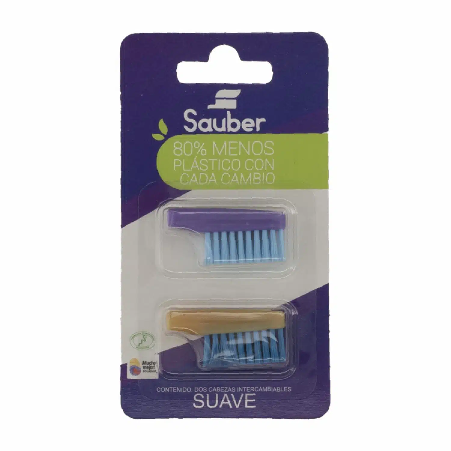 Repuesto Cepillo Dental Cerdas Suaves Cabeza Intercambiable SAUBER Pack X2 U