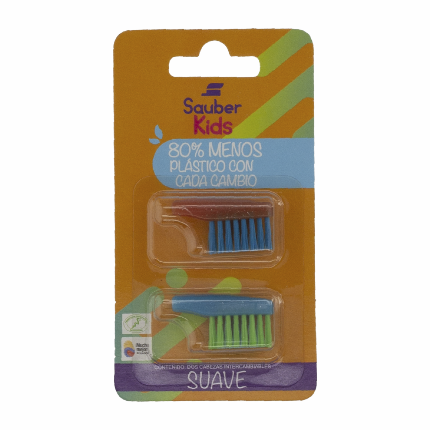 Repuesto Cepillo Dental Infantil Cerdas Suaves Cabeza Intercambiable SAUBER Pack X2 U