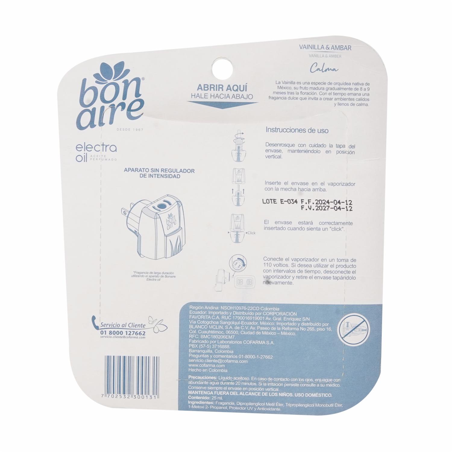 Repuesto Eléctrico Vainilla BONAIRE 3 Unidades X 25 Ml