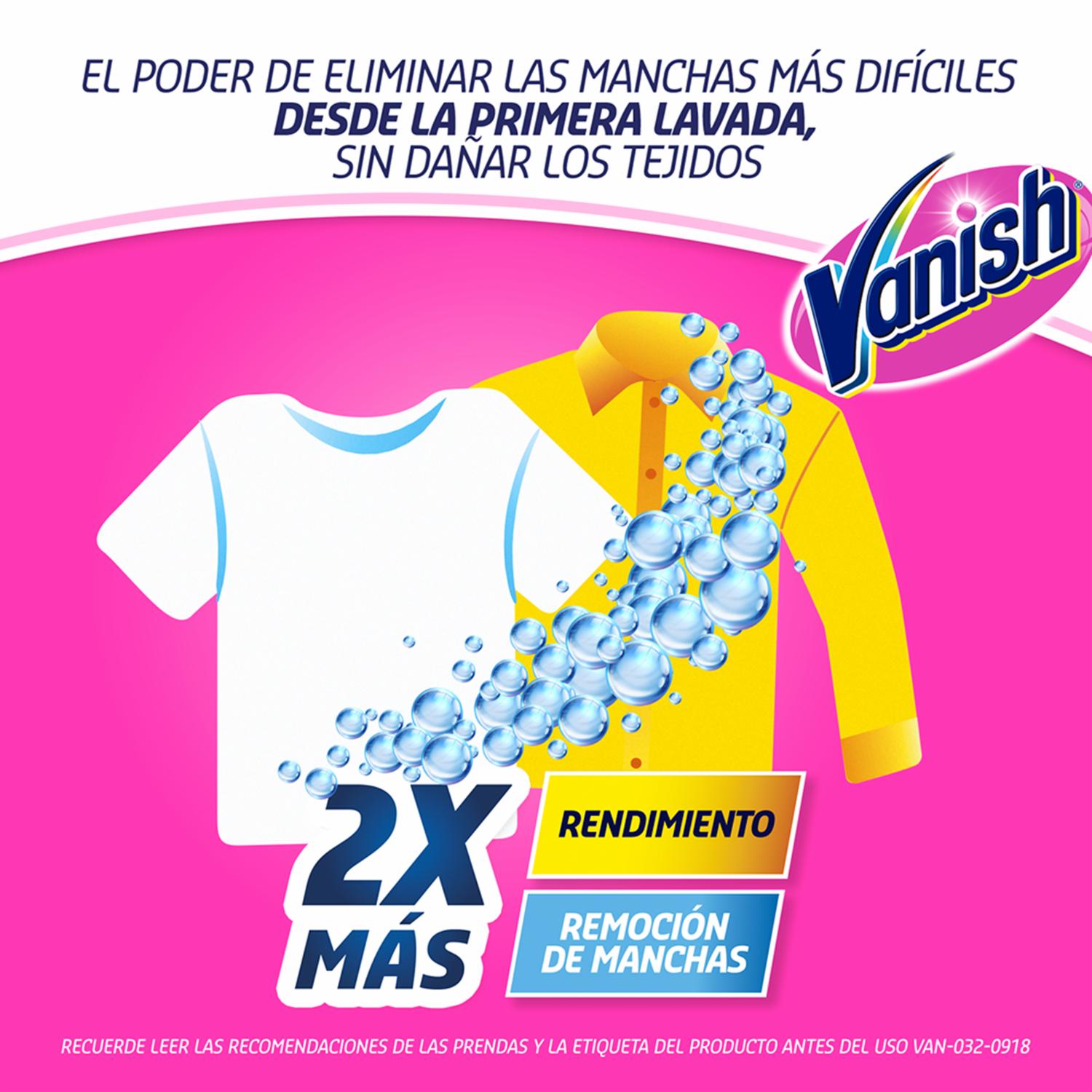 - Vanish Prelavado Es Un Quitamanchas Líquido Que Elimina Las Manchas De Tus Prendas En La Primera Lavada. Hecho Especialmente Para Aplicarlo Previo Al Lavado En Lavadora En Manchas Ubicadas En Lugares Difíciles. Lea Atentamente El Rótulo / Etiqueta De Las Prendas Y El Producto Antes De Su Uso