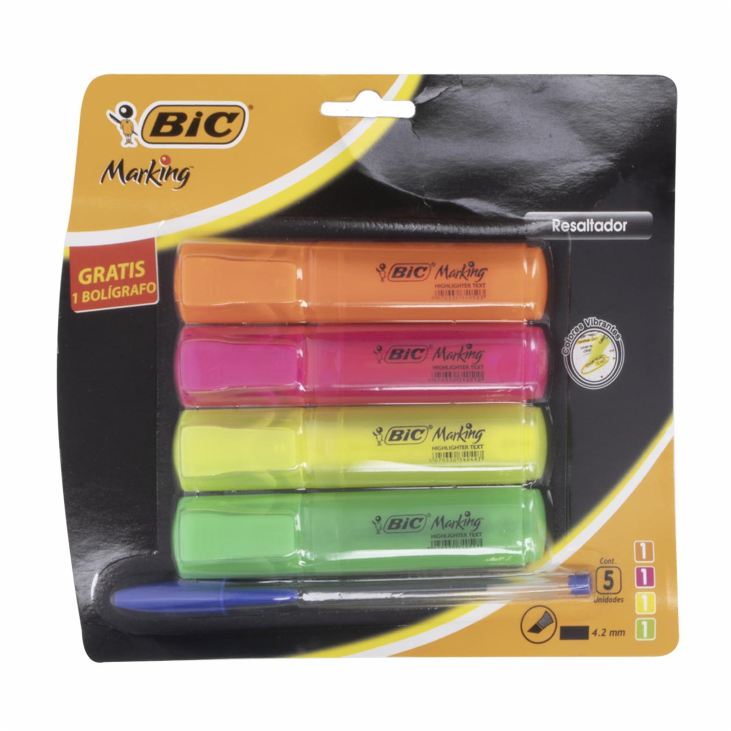 Resaltador De Texto Amarillo Rosado Verde Naranja BIC X 4 Uds