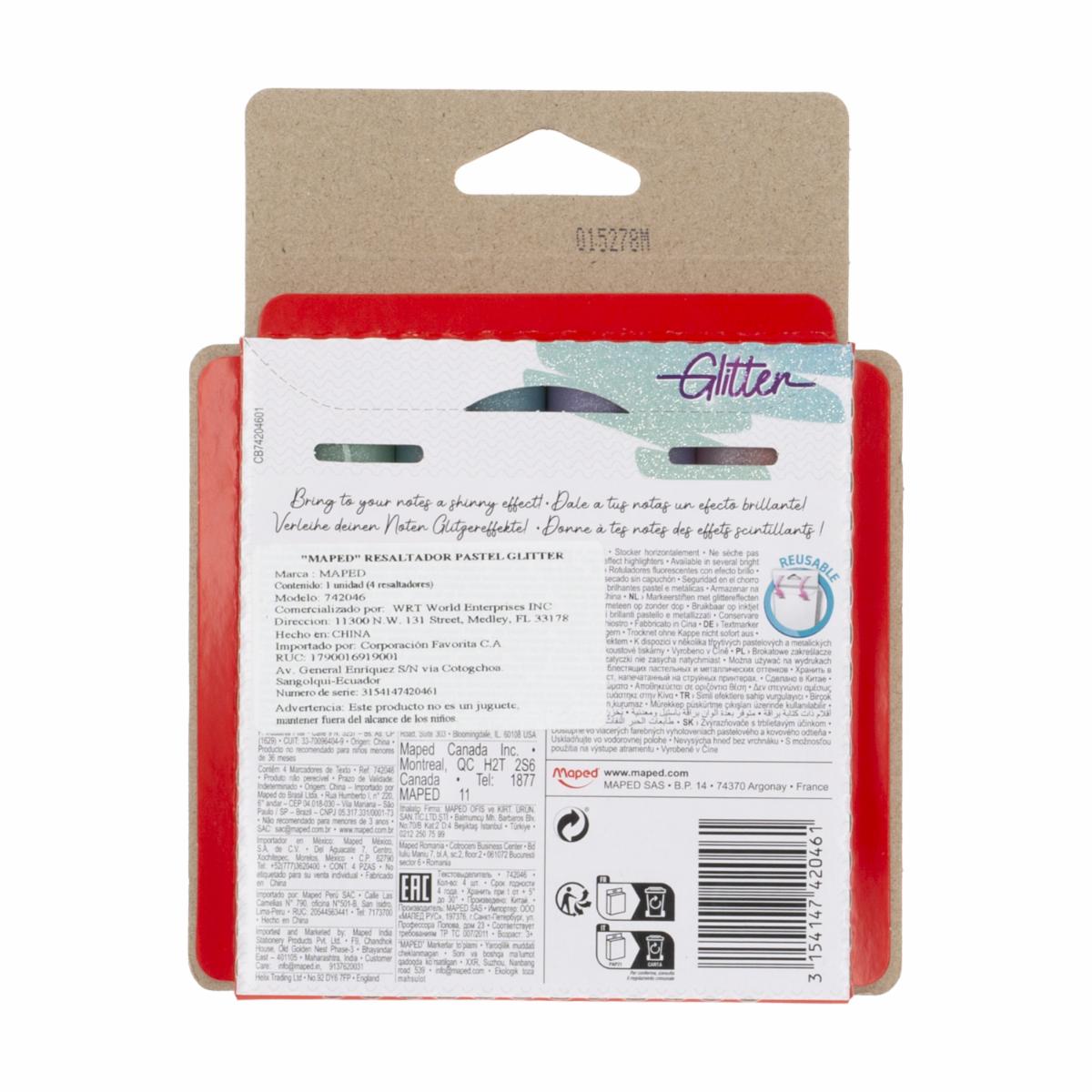Resaltadores Pastel Glitter MAPED X 4 Uds