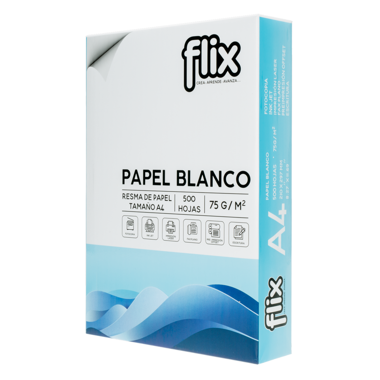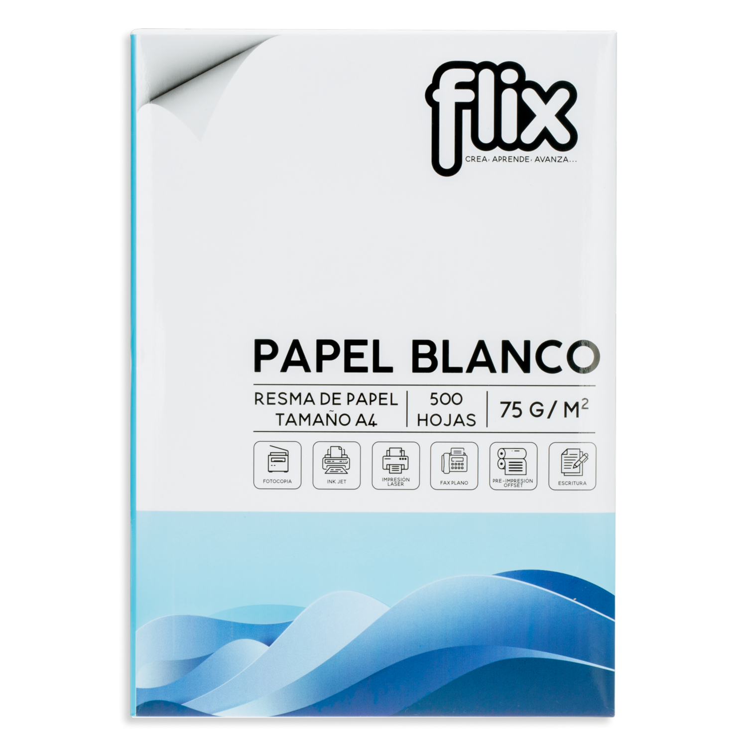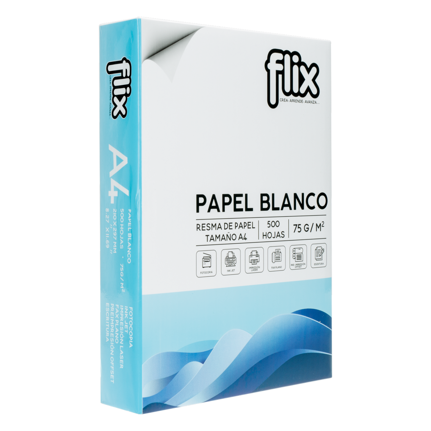 • La Resma de Papel Bond A4 FLIX 75 g es ideal para impresión y escritura, ofreciendo una excelente calidad y rendimiento
