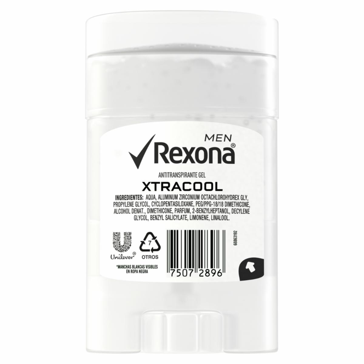 - Experimenta una frescura intensa con el Desodorante Gel Xtracool Men de Rexona en su envase de 80g. Su fórmula avanzada te brinda una protección efectiva contra el mal olor y la humedad, manteniéndote fresco y confiado durante todo el día. Ideal para hombres activos, su textura en gel se absorbe rápidamente sin dejar residuos, mientras que su aroma refrescante te brinda una sensación de frescura duradera. Rexona Xtracool Men Gel, la frescura intensa que necesitas en cada actividad