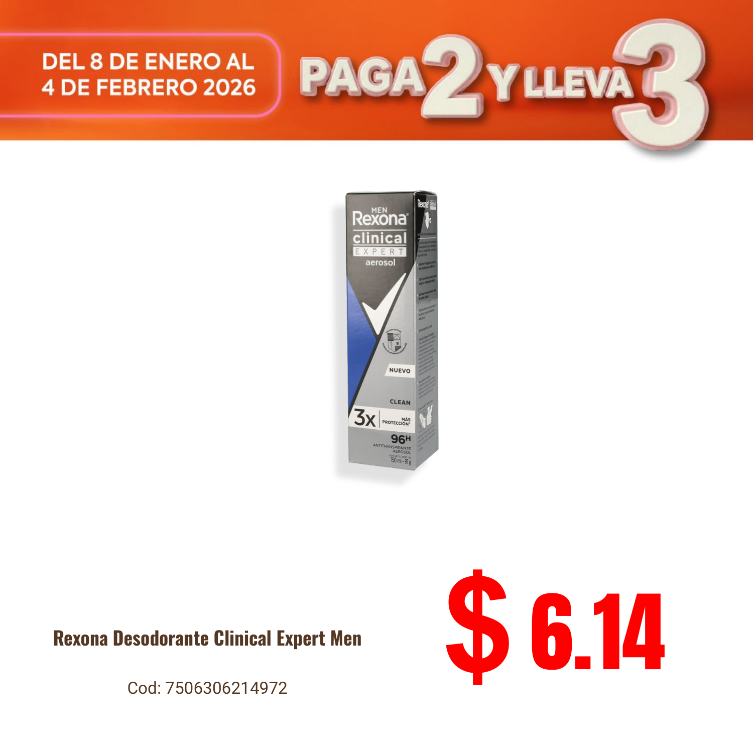 Rexona Desodorante Clinical Expert Men. Disponible en nuestros locales. Precio y stock pueden variar según la tienda.