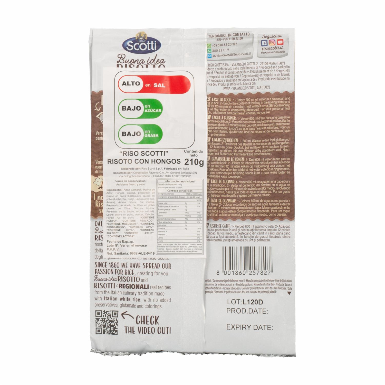 consultando preciosRisoto Con Hongos RISO SCOTTI 210 g – RISO SCOTTI. Disponible en nuestros locales. Precio y stock pueden variar según la tienda.