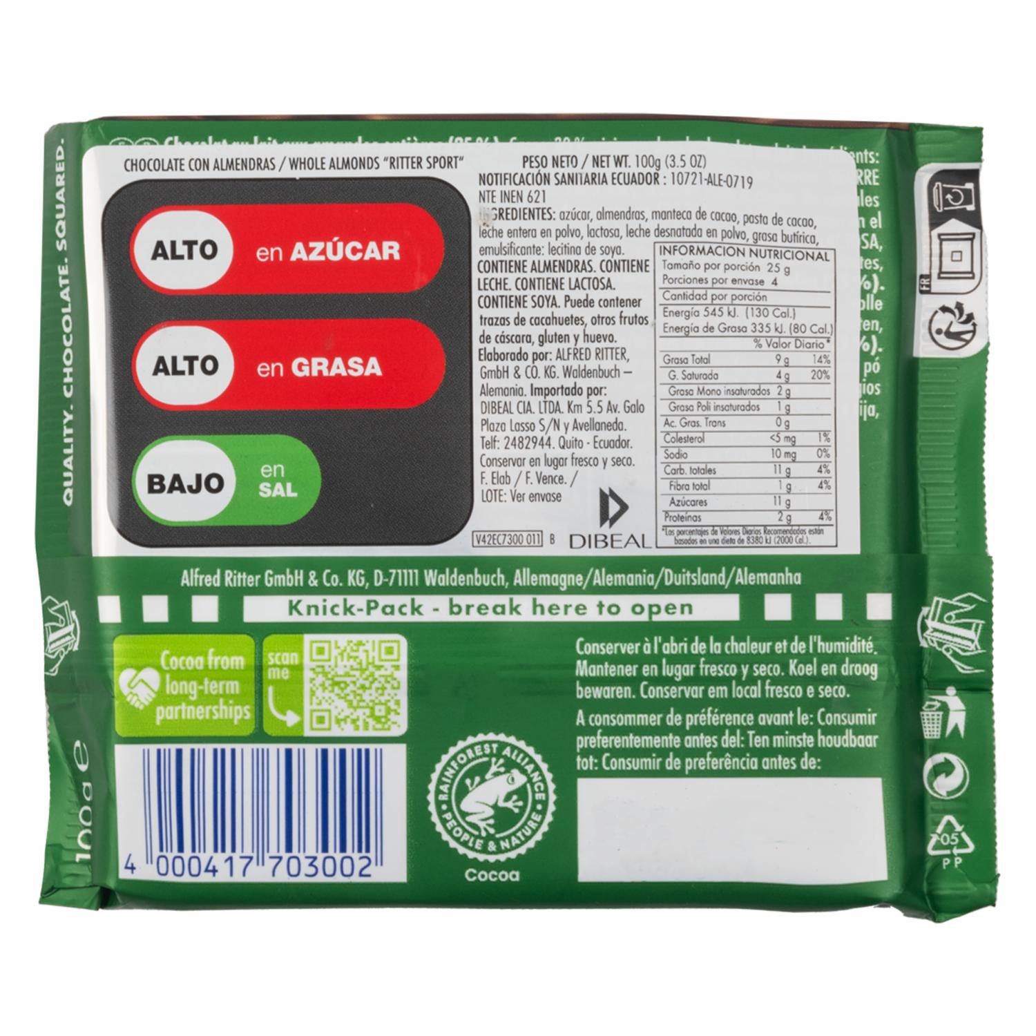 Chocolate Con Leche Y Almendra RITTER SPORT 100 G