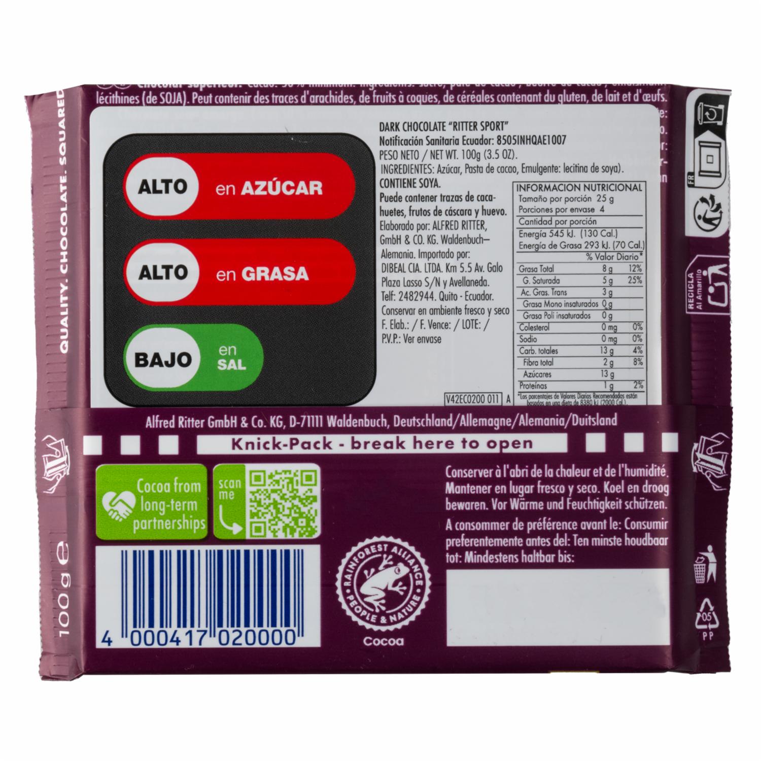 consultando preciosChocolate Negro RITTER SPORT 100 G – RITTER SPORT. Disponible en nuestros locales. Precio y stock pueden variar según la tienda.