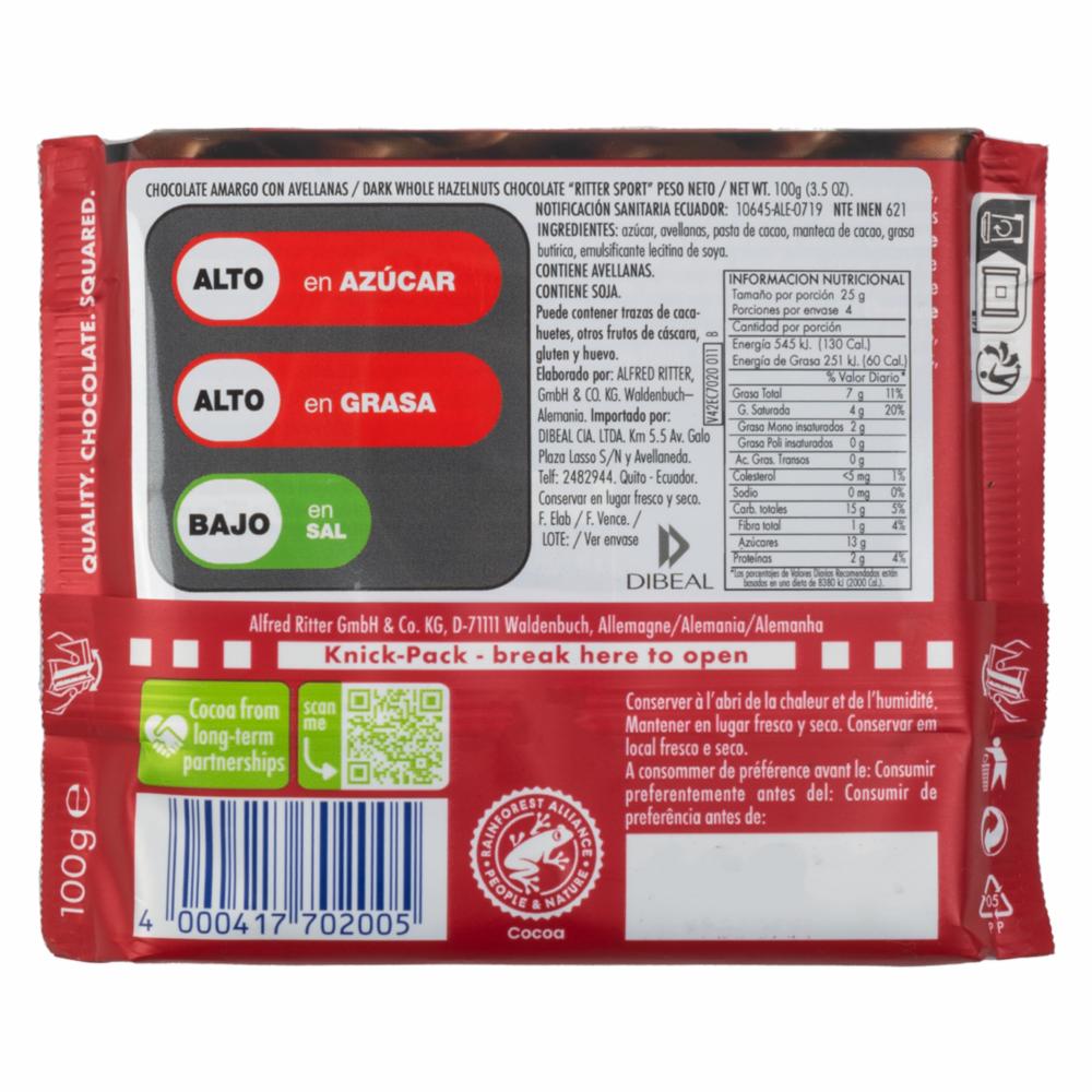 Chocolate Negro Con Avellanas RITTER SPORT 100 G