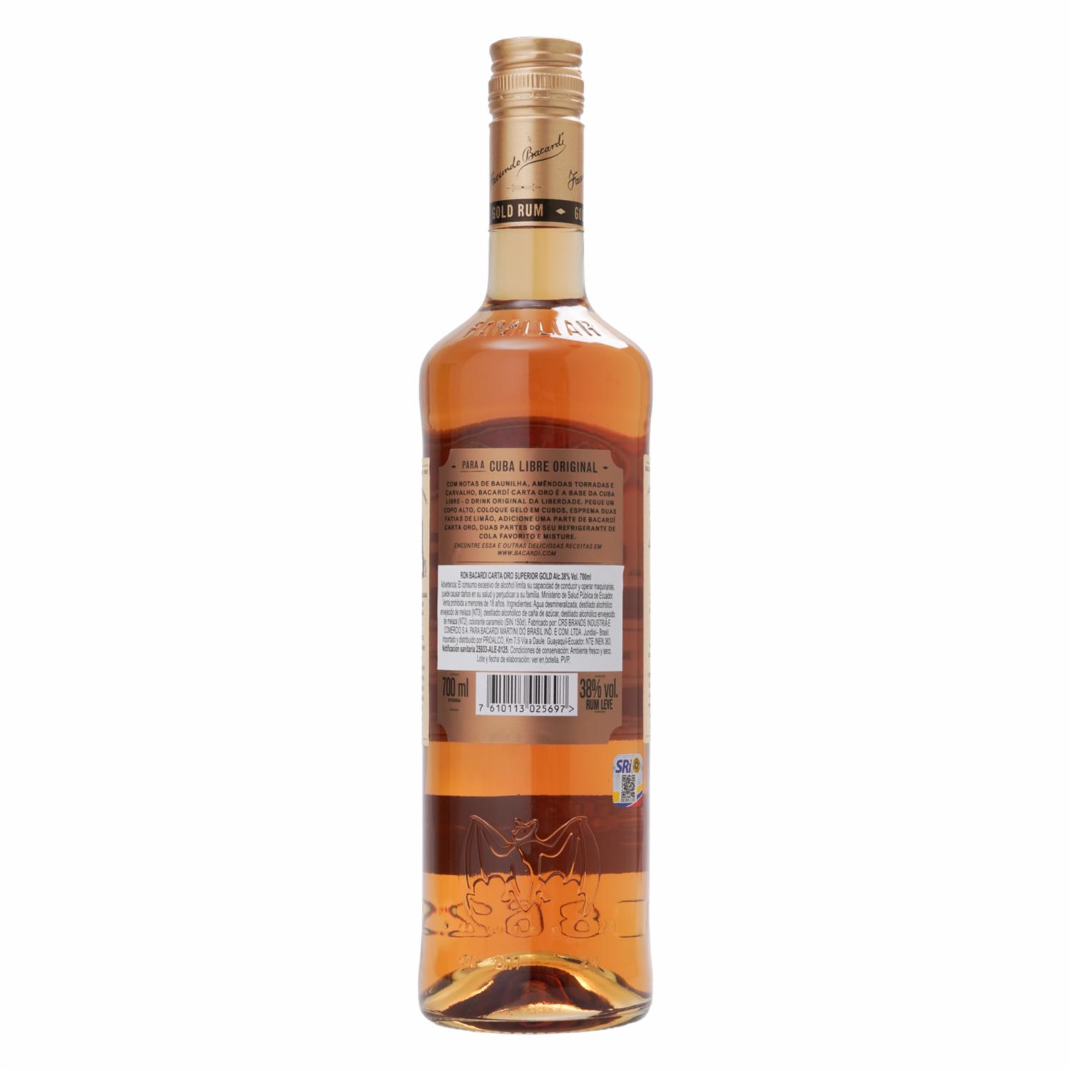 Ron Carta Oro BACARDÍ 700 Ml – BACARDÍ. Disponible en nuestros locales. Precio y stock pueden variar según la tienda.