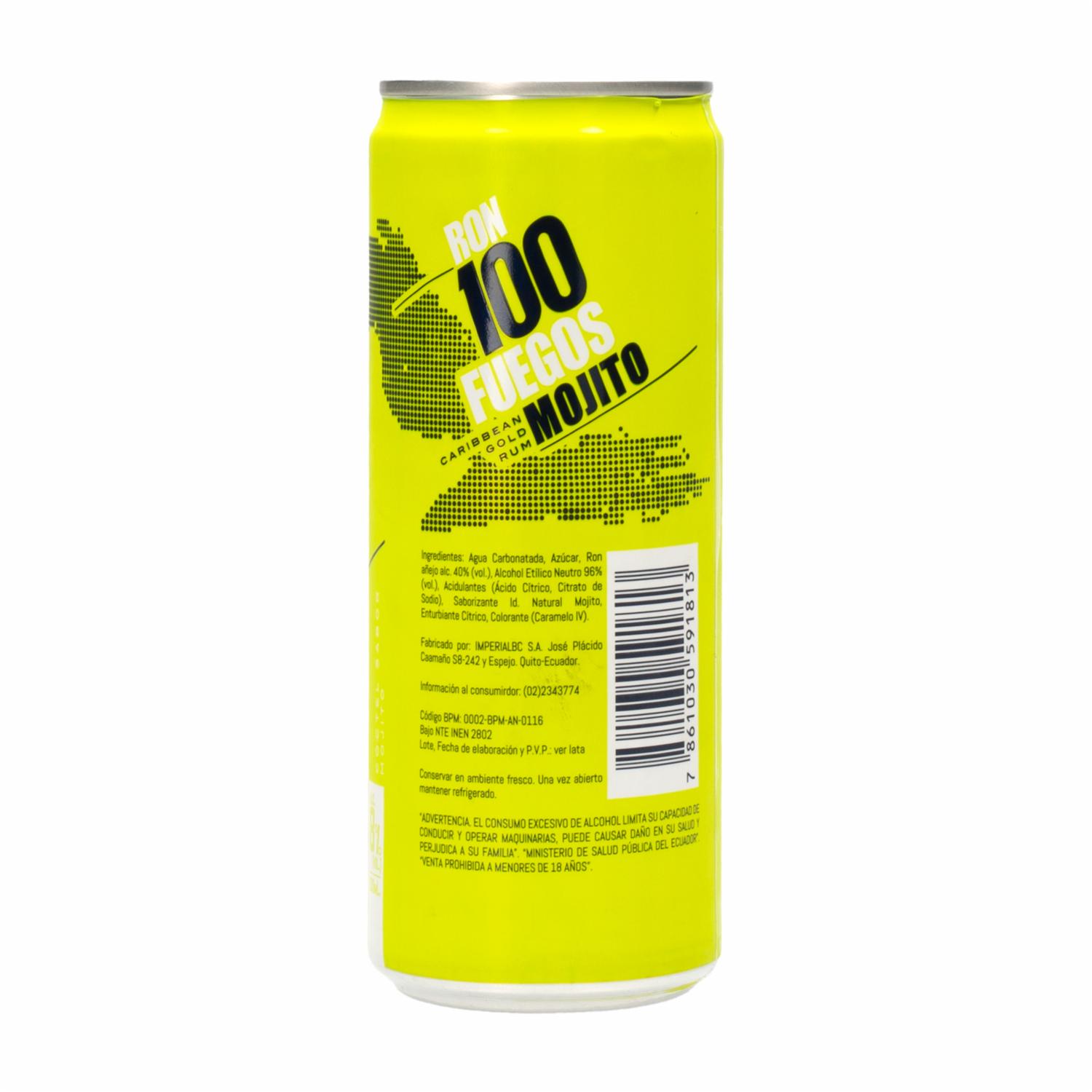Ron Mojito 100 FUEGOS 330 Ml – 100 FUEGOS. Disponible en nuestros locales. Precio y stock pueden variar según la tienda.