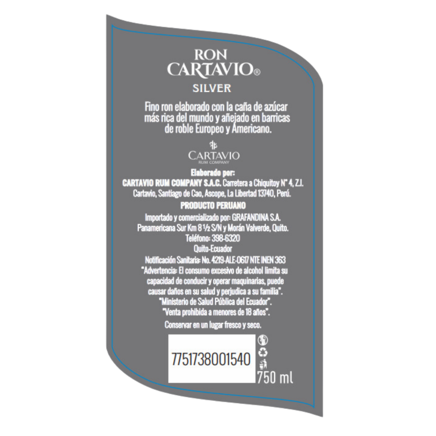 Ron Silver CARTAVIO 750 Ml – CARTAVIO. Disponible en nuestros locales. Precio y stock pueden variar según la tienda.