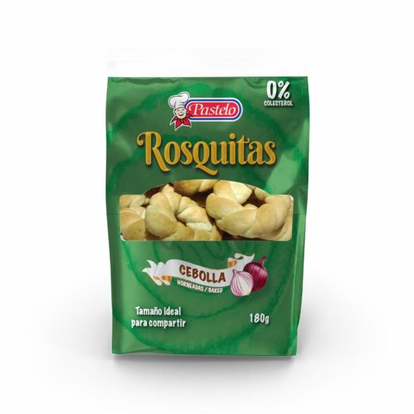 Rosquitas horneadas en forma circular y torneada, y crocante. Con sabor a cebolla