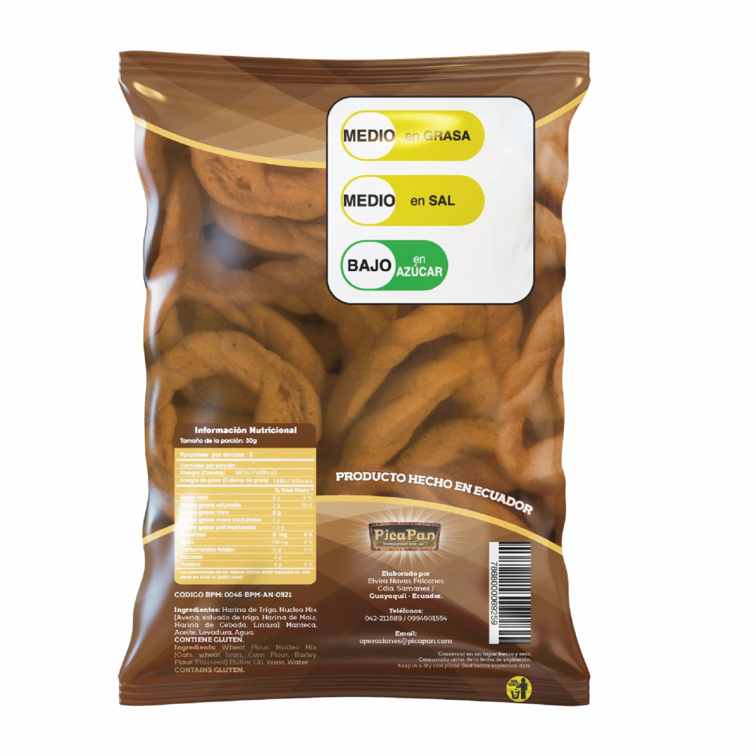 - Exquisitos snacks para disfrutar solos o con tu aderezo preferido, rosquitas multicereales artesanales 0% grasas trans PICA PAN 150 g. Sin preservantes