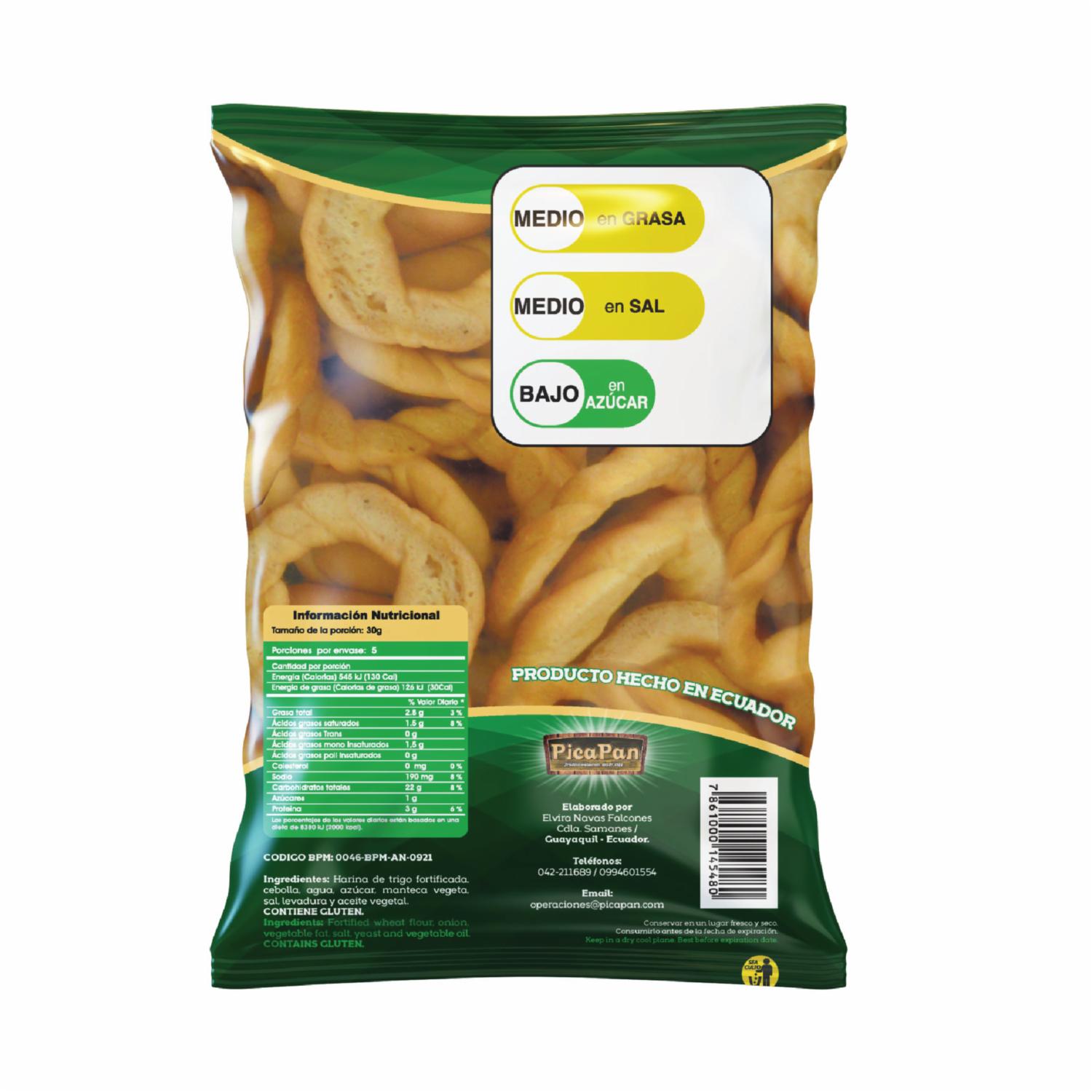 - Exquisitos snacks para disfrutar solos o con tu aderezo preferido, rosquitas sabor cebolla mini artesanales 0% grasas trans PICA PAN 50 g. Sin preservantes