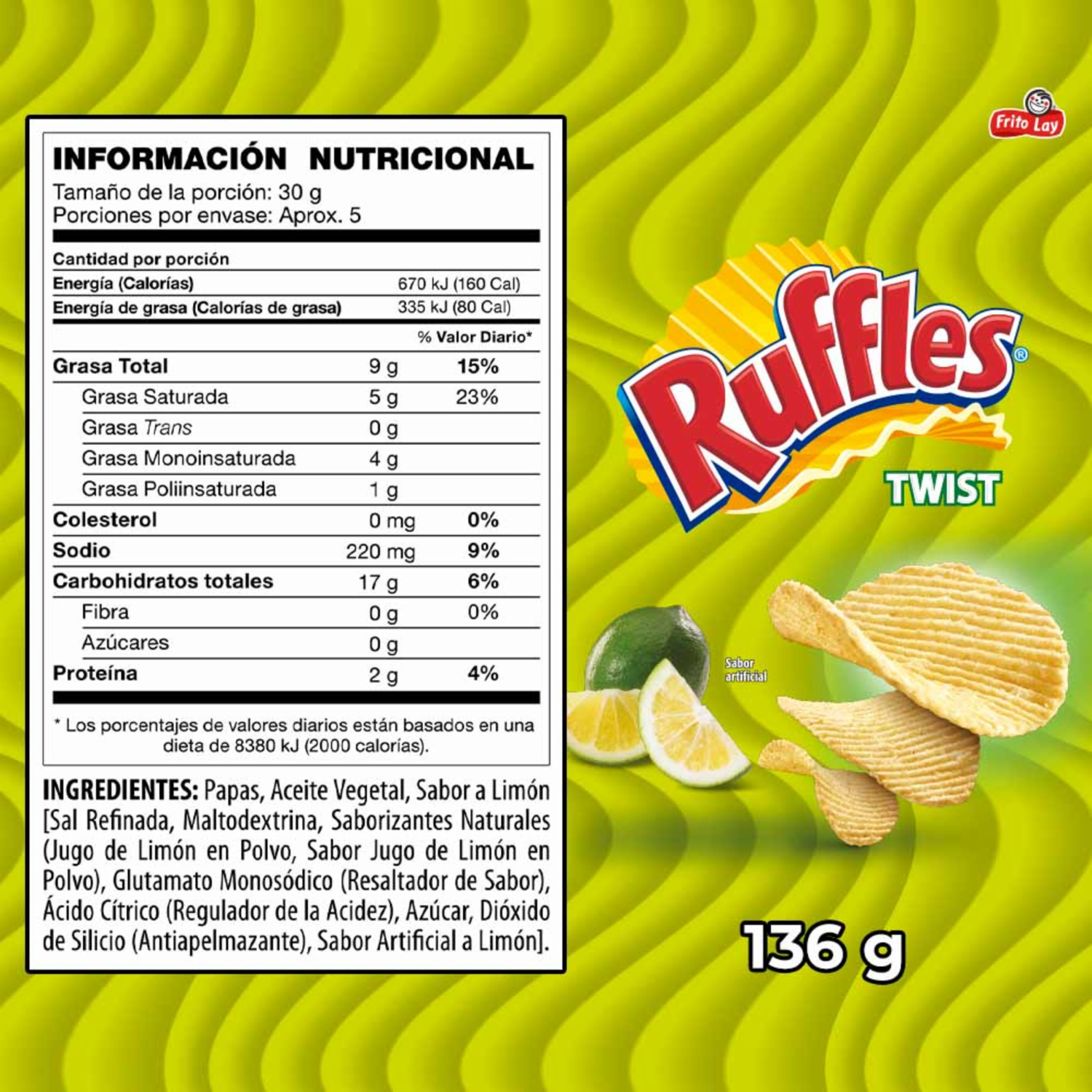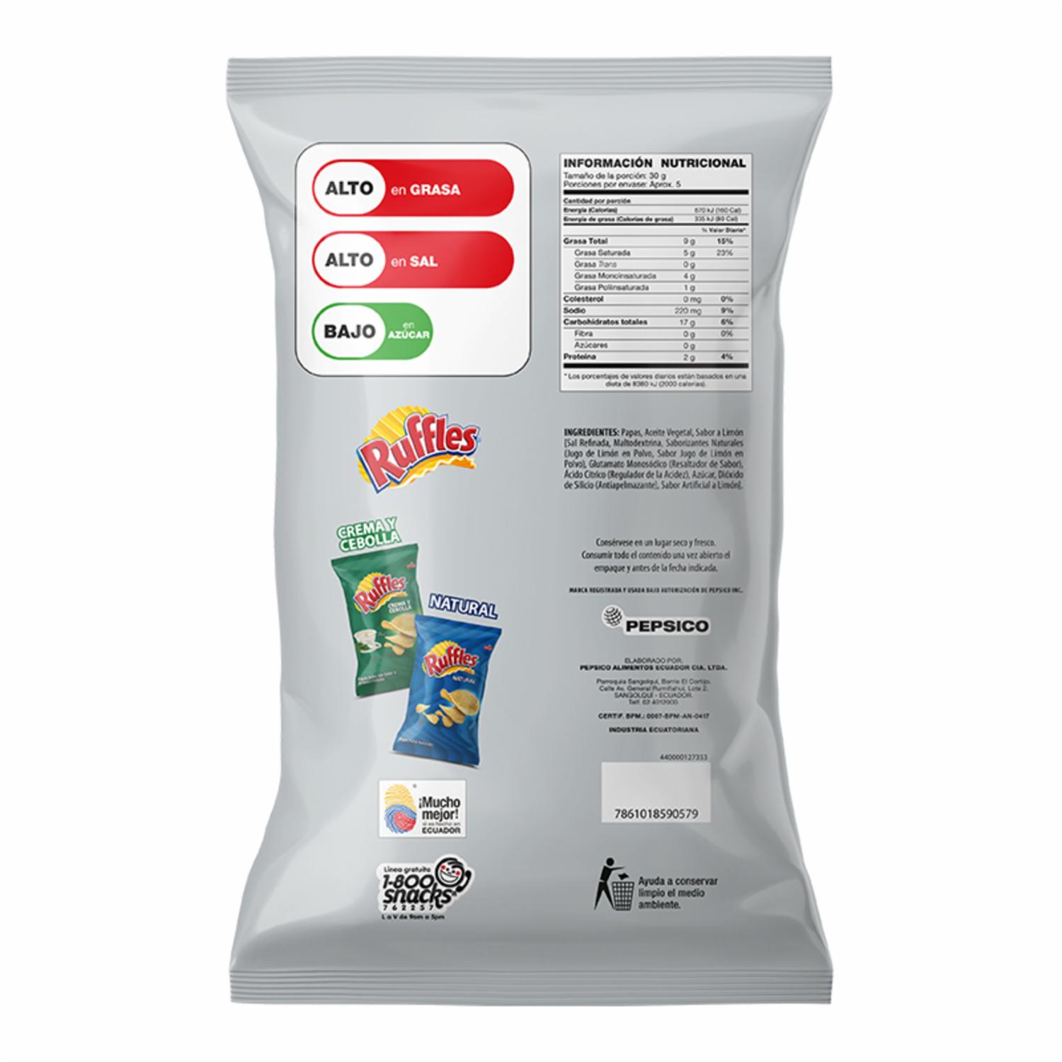 Papas Fritas Twist RUFFLES 136 g – RUFFLES. Disponible en nuestros locales. Precio y stock pueden variar según la tienda.