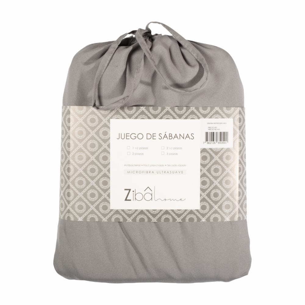 Sábana De Microfibra Gris ZIBA HOME 1 1/2 Plazas
