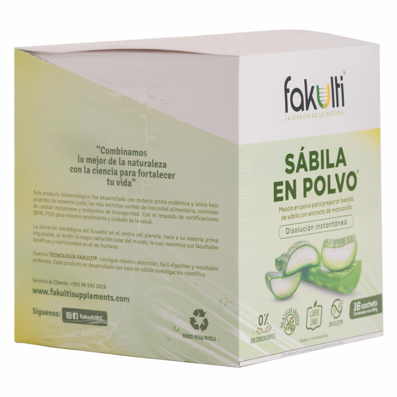 Sábila En Polvo Con EXtracto De Manzanilla Disolución Instantánea FAKULTI 16 Uds X 180 G