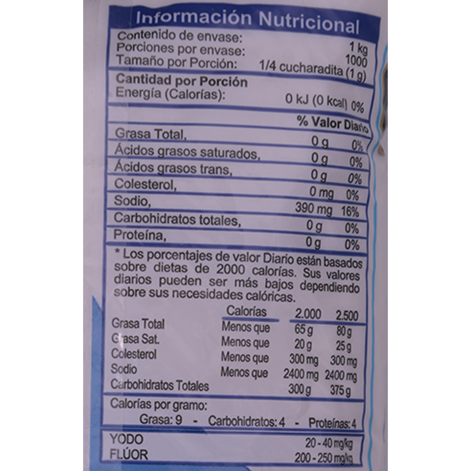 - Un toque esencial para tu cocina y tu salud. La sal yodada y fluorada EL ARTESANAL aporta minerales clave para fortalecer tu organismo mientras realza el sabor de tus platillos favoritos. Presentación de 1 kg, perfecta para uso diario y toda la familia