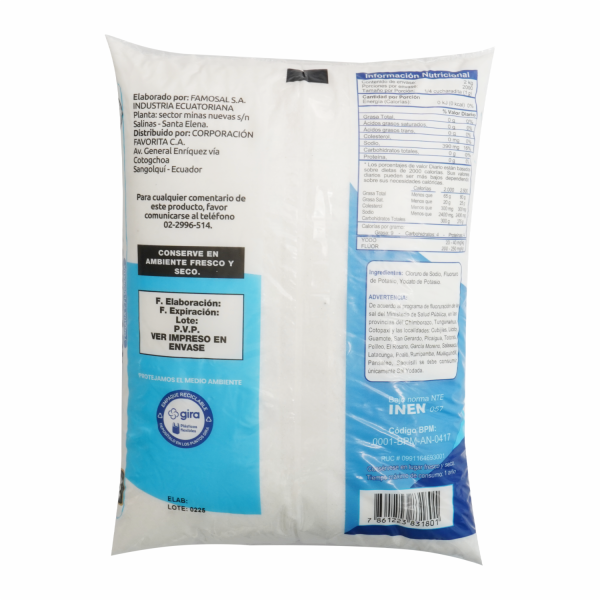 Sal De Mesa Yodada Y Fluorada EL ARTESANAL 2000 G