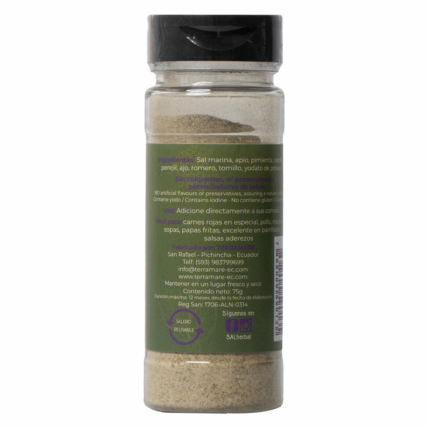 Sal Marina Con Especias SALHERBAL 75 G – SALHERBAL. Disponible en nuestros locales. Precio y stock pueden variar según la tienda.