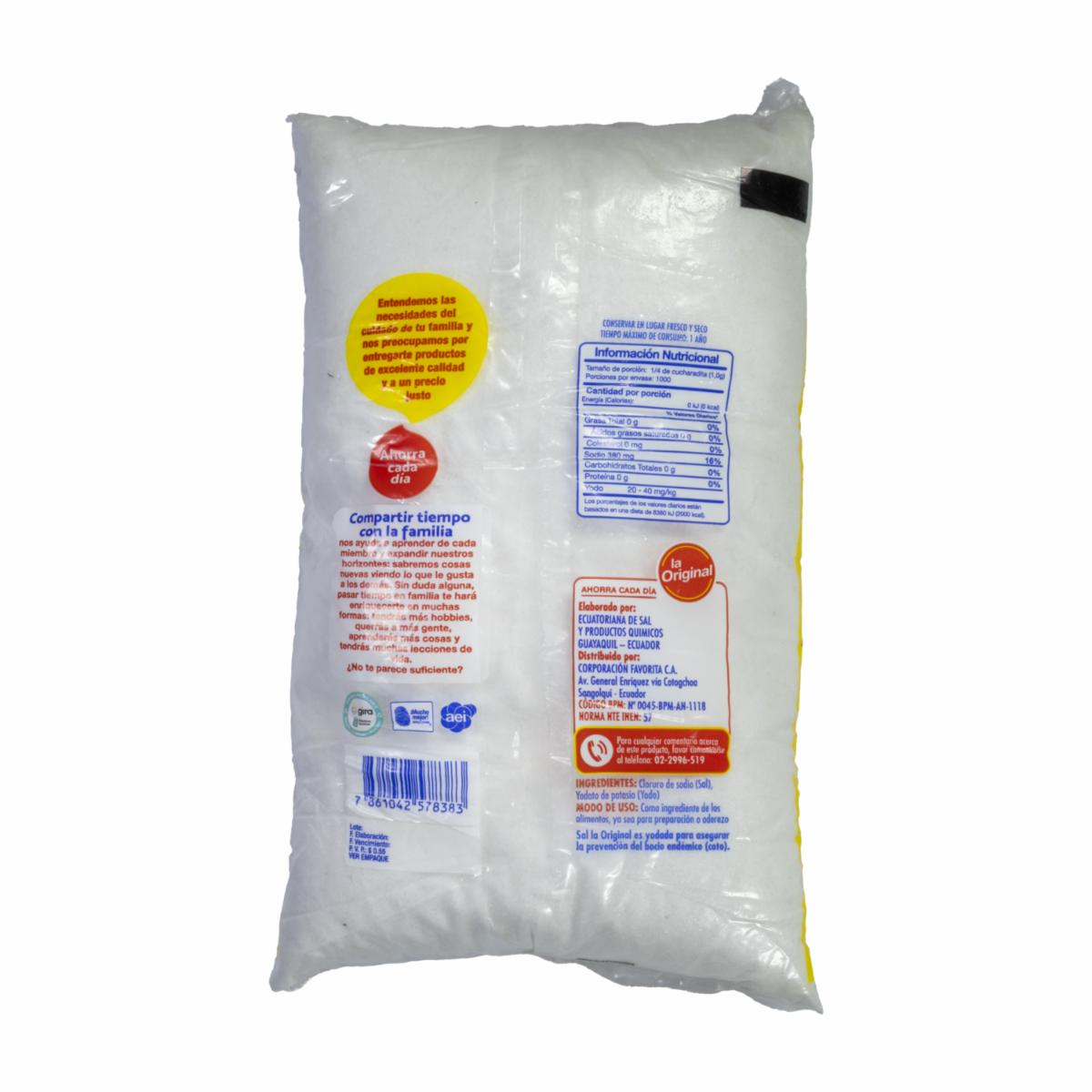 consultando preciosSal Yodada Sin Flúor LA ORIGINAL 1000 G – LA ORIGINAL. Disponible en nuestros locales. Precio y stock pueden variar según la tienda.