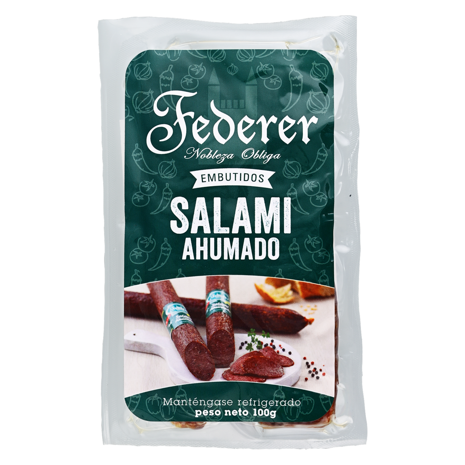 consultando preciosSalame Ahumado FEDERER 100 g – FEDERER. Disponible en nuestros locales. Precio y stock pueden variar según la tienda.