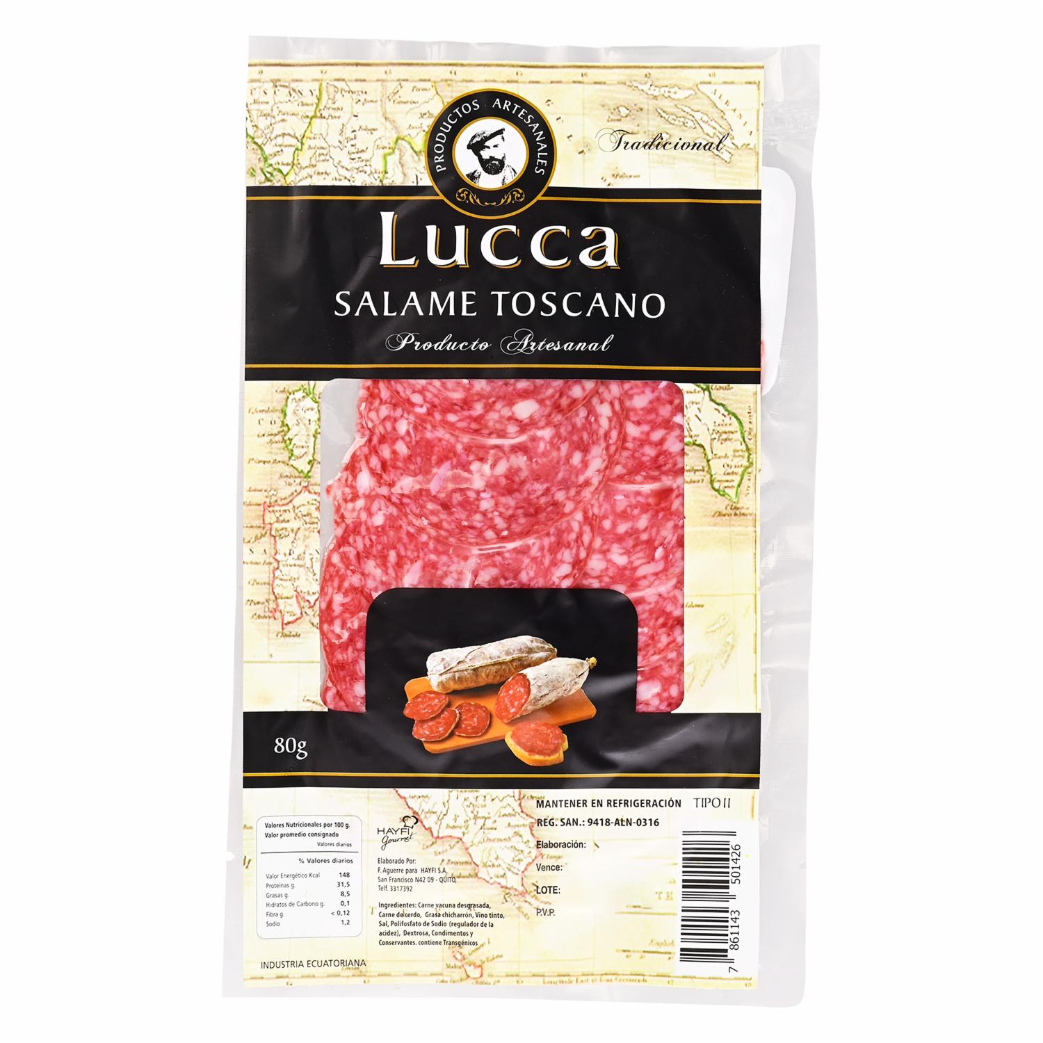 consultando preciosSalame Toscano Picado Grueso LUCCA 80G – LUCCA. Disponible en nuestros locales. Precio y stock pueden variar según la tienda.