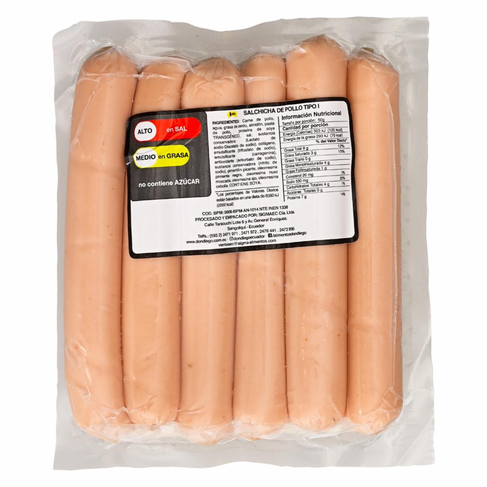 Salchichas de pollo finamente procesadas y elaboradas para mantener su delicioso sabor y propiedades