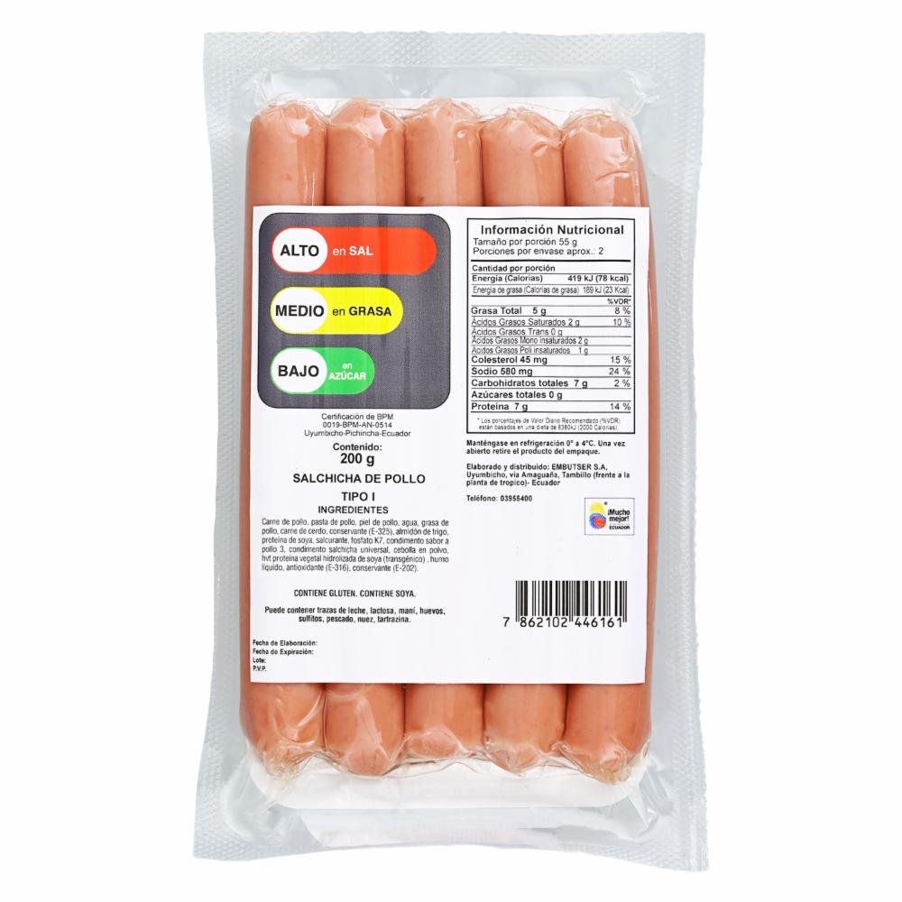Salchicha De Pollo FEDERER 200 G – FEDERER. Disponible en nuestros locales. Precio y stock pueden variar según la tienda.