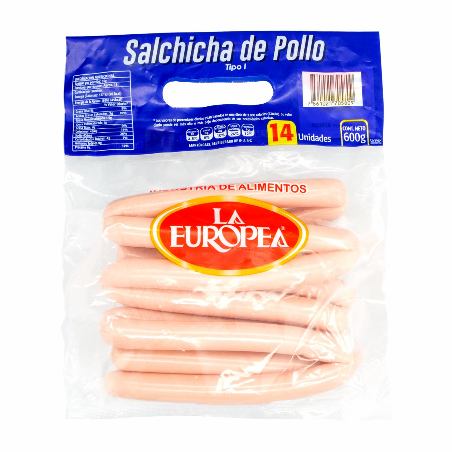 consultando preciosSalchichas De Pollo LA EUROPEA 600 G – LA EUROPEA. Disponible en nuestros locales. Precio y stock pueden variar según la tienda.