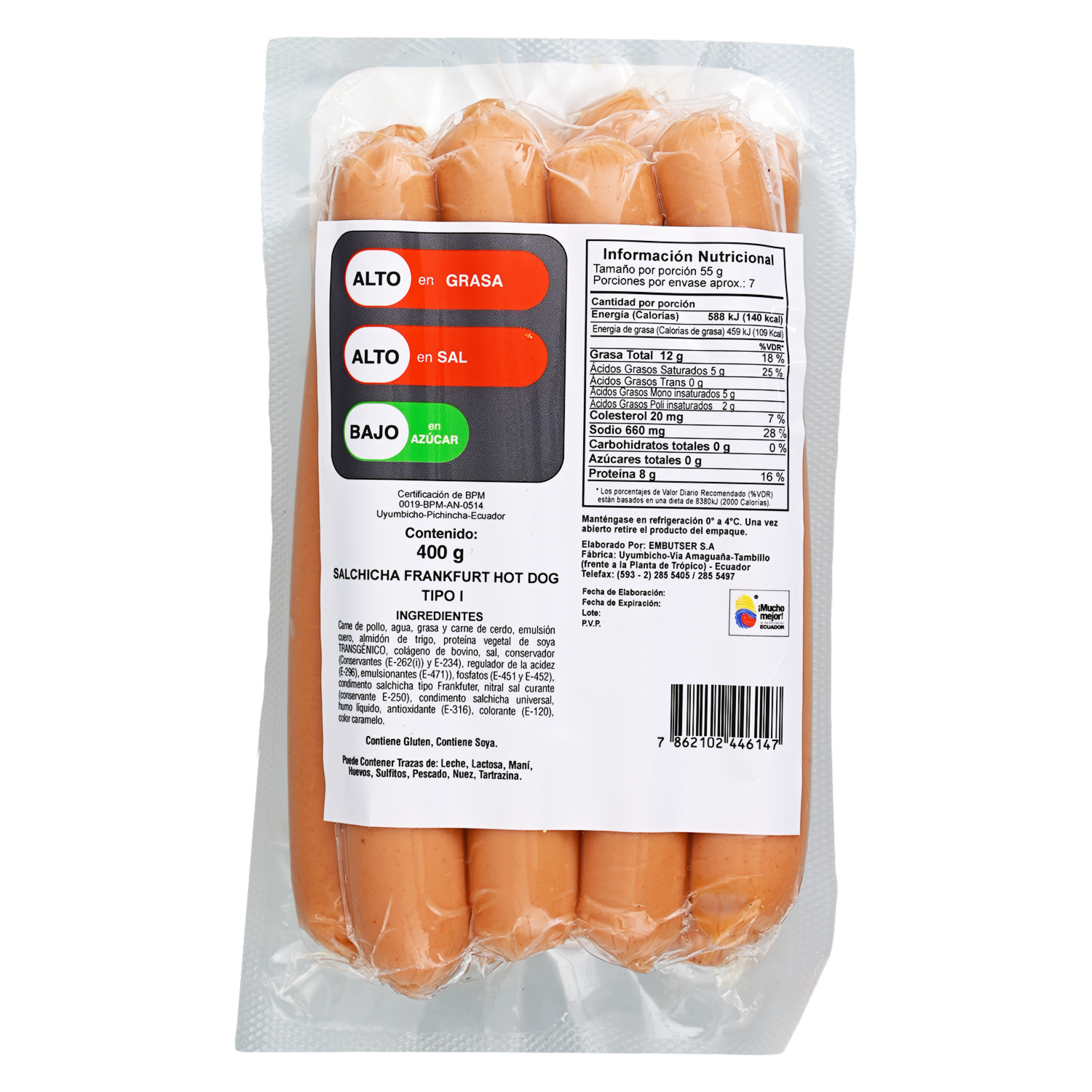 - Disfruta de la auténtica salchicha Frankfurt tipo I, ideal para preparar hot dogs con sabor y textura inigualables. Elaborada con carne seleccionada, tiene un sabor suave y jugoso que se combina perfectamente con tu pan y condimentos favoritos