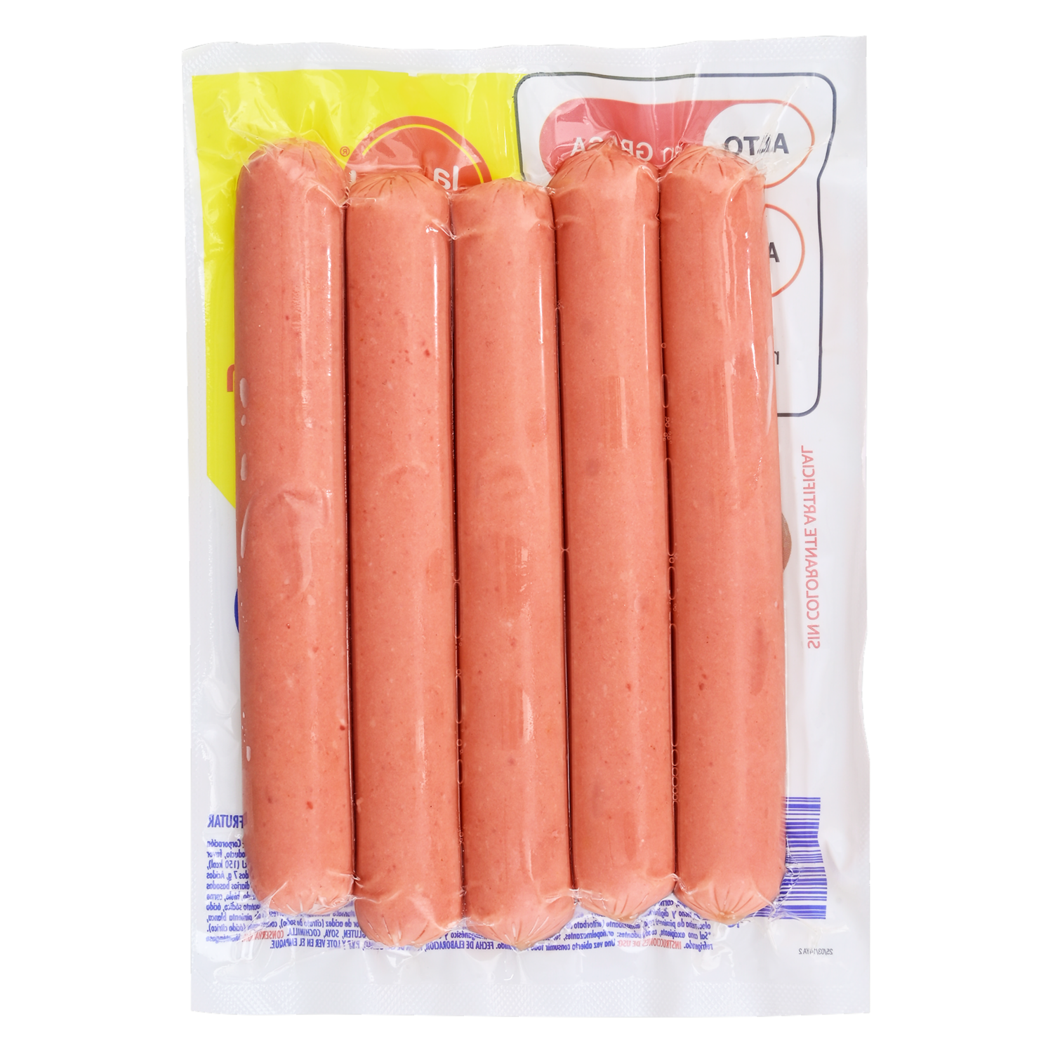 - Salchicha Frankfurt con sabor tradicional y textura suave que se derrite en el paladar. Perfecta para preparar comidas rápidas como hot dogs o acompañar ensaladas. Fácil de calentar y lista para disfrutar en cualquier momento. Ideal para compartir en reuniones familiares o con amigos