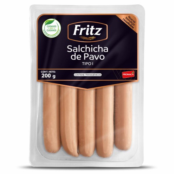 • El producto Salchicha de Pavo Fritz es elaborado con carne de pavo de alta calidad. - Es una opción más saludable que las salchichas tradicionales, ya que contiene menos grasa y calorías. - Tiene un sabor delicioso y jugoso, ideal para disfrutar en sándwiches, hot dogs o como ingrediente en diferentes recetas