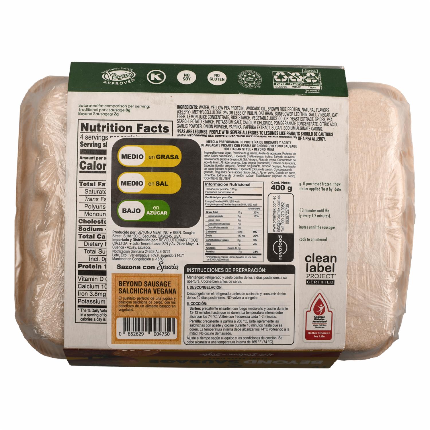 consultando preciosSalchichas Vegetarianas Hot Italian BEYOND 400 G – BEYOND. Disponible en nuestros locales. Precio y stock pueden variar según la tienda.
