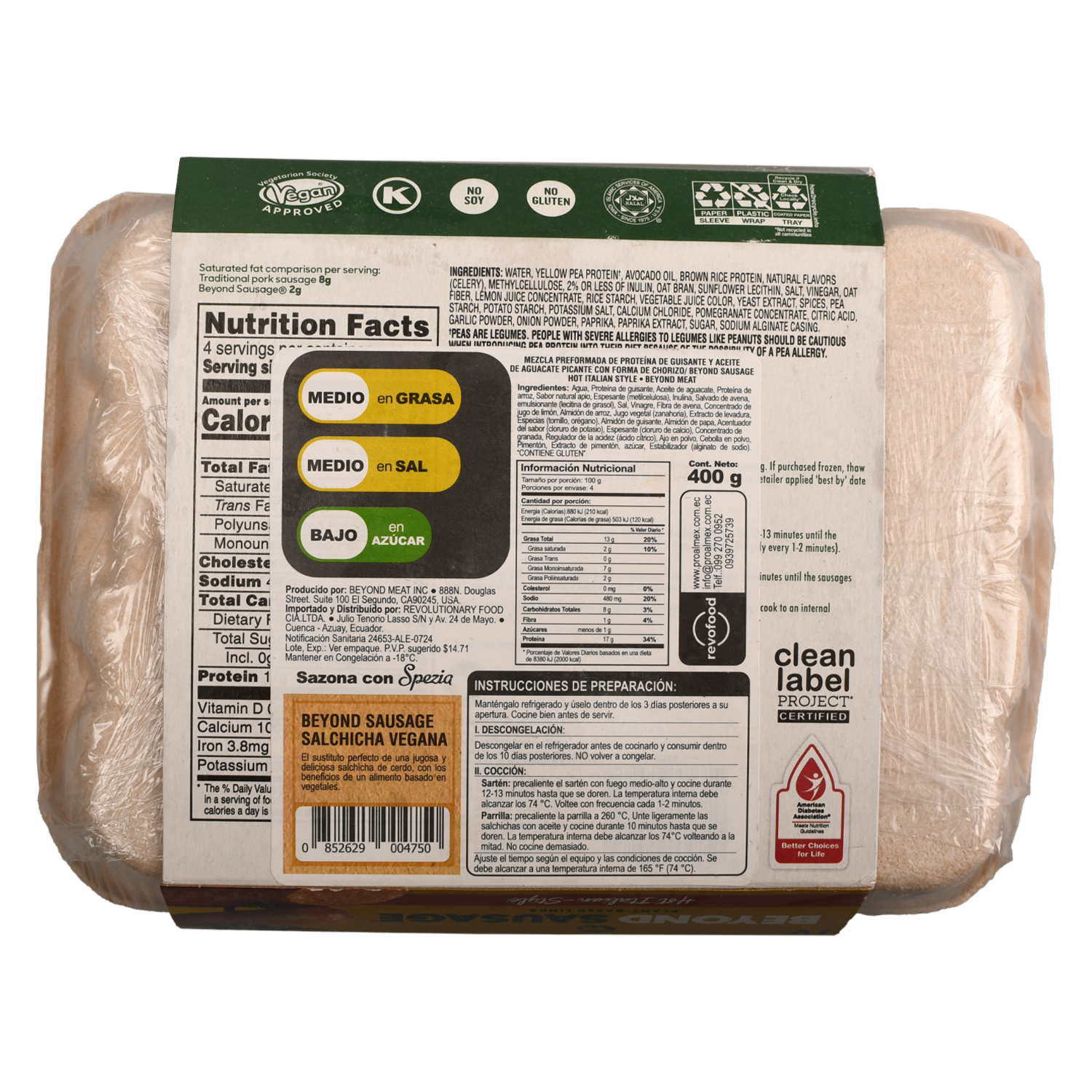 Salchichas Vegetarianas Hot Italian BEYOND 400 G – BEYOND. Disponible en nuestros locales. Precio y stock pueden variar según la tienda.