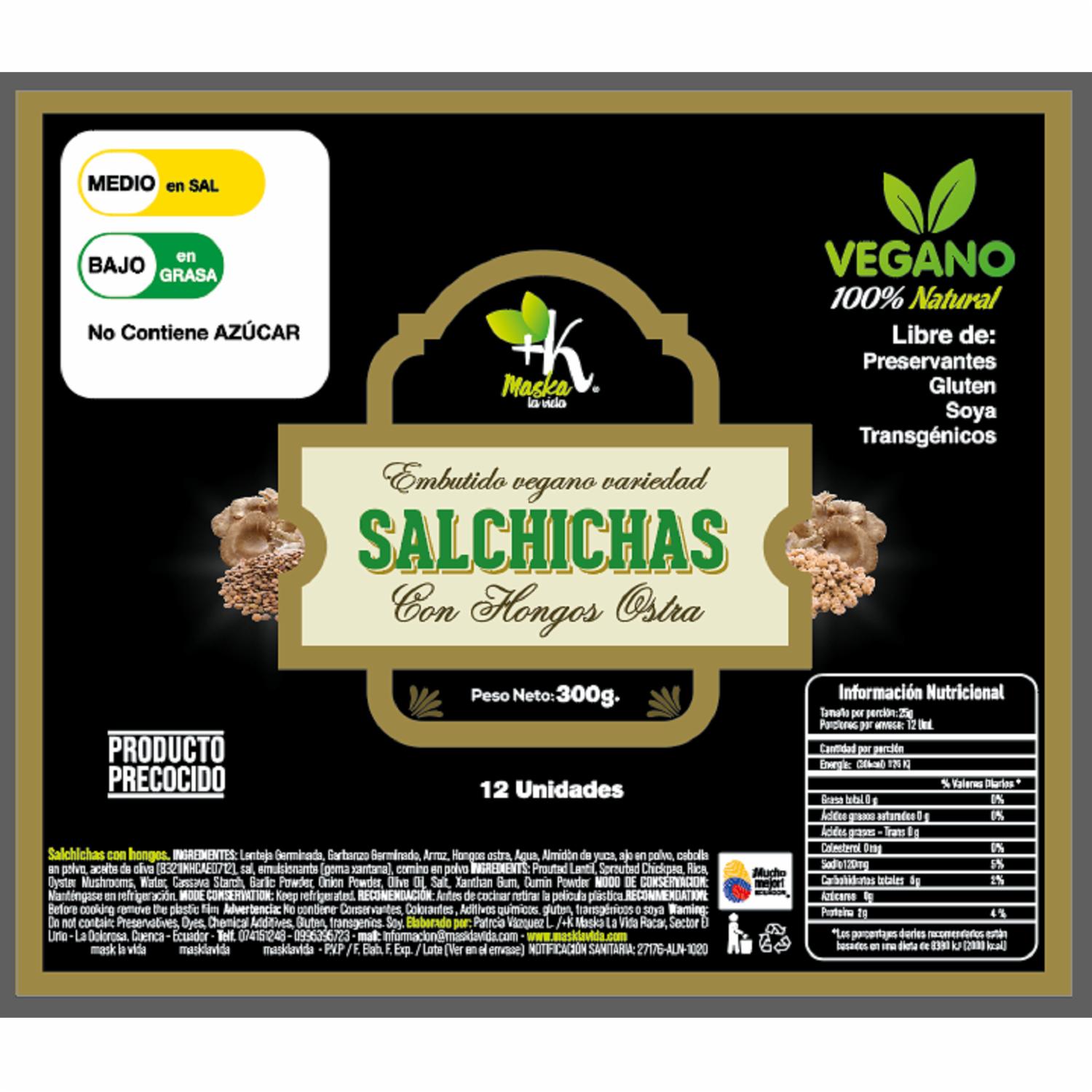 Salchichas Veganas Con Hongos Ostra +K MASKA LA VIDA 12 Uds 300 G
