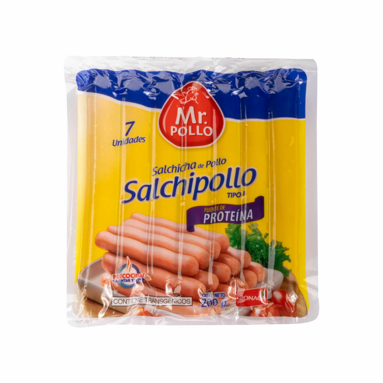 consultando preciosSalchipollo Tipo I MR. POLLO 200g – MR. POLLO. Disponible en nuestros locales. Precio y stock pueden variar según la tienda.