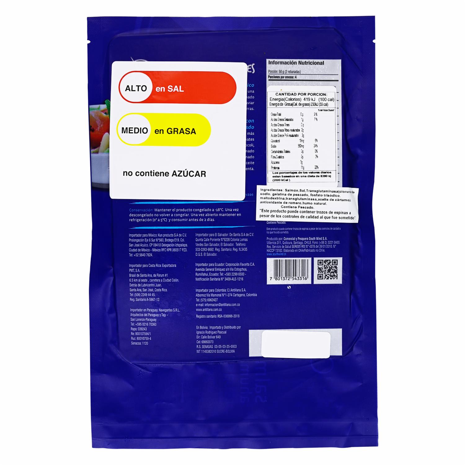 Porción de salmón calidad premium ahumado lentamente a 60ºC con madera de haya bajo nuestra receta clásica, obteniendo una textura suave y tersa.