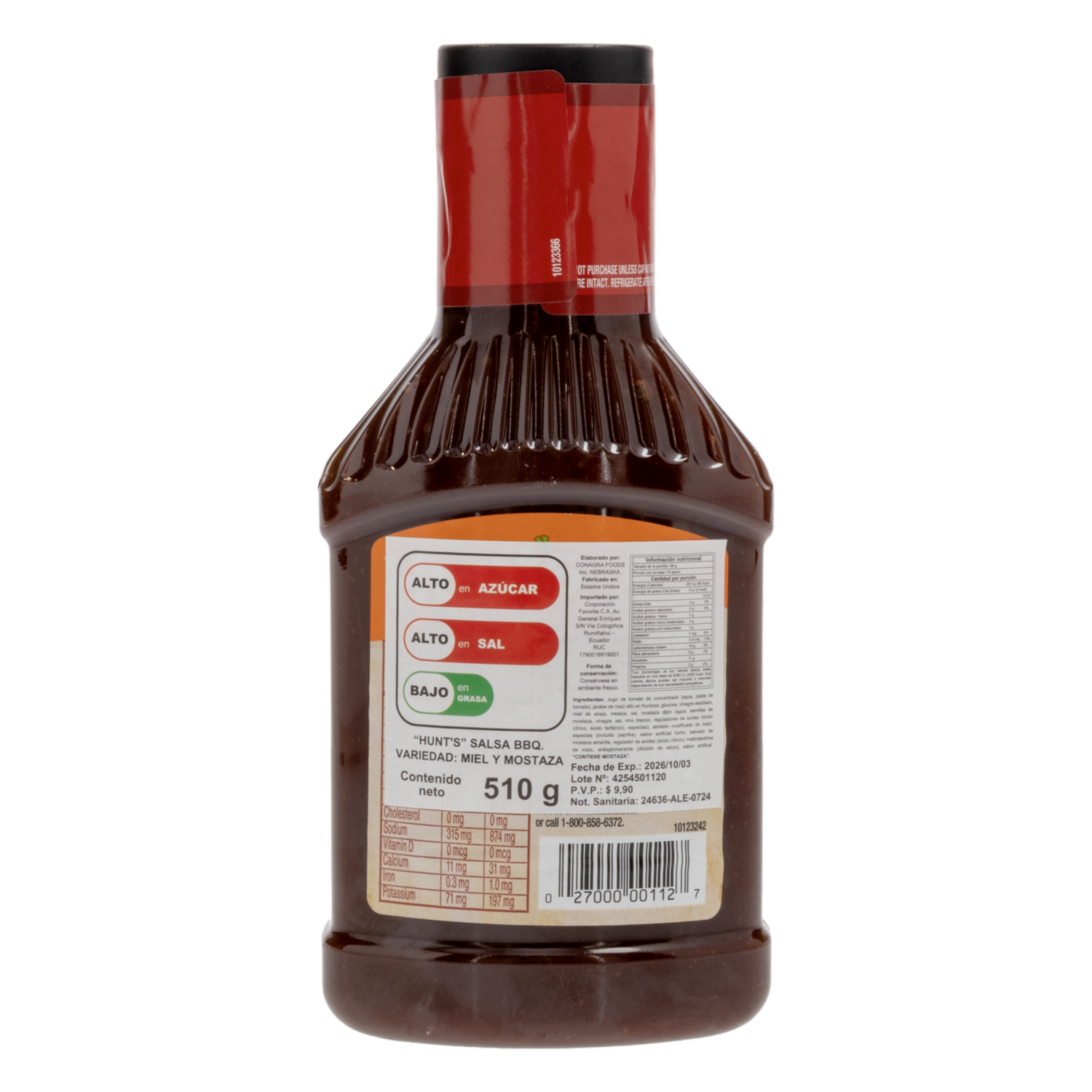 Salsa Bbq Con Miel Y Mostaza HUNT’S 510 G – HUNTS. Disponible en nuestros locales. Precio y stock pueden variar según la tienda.