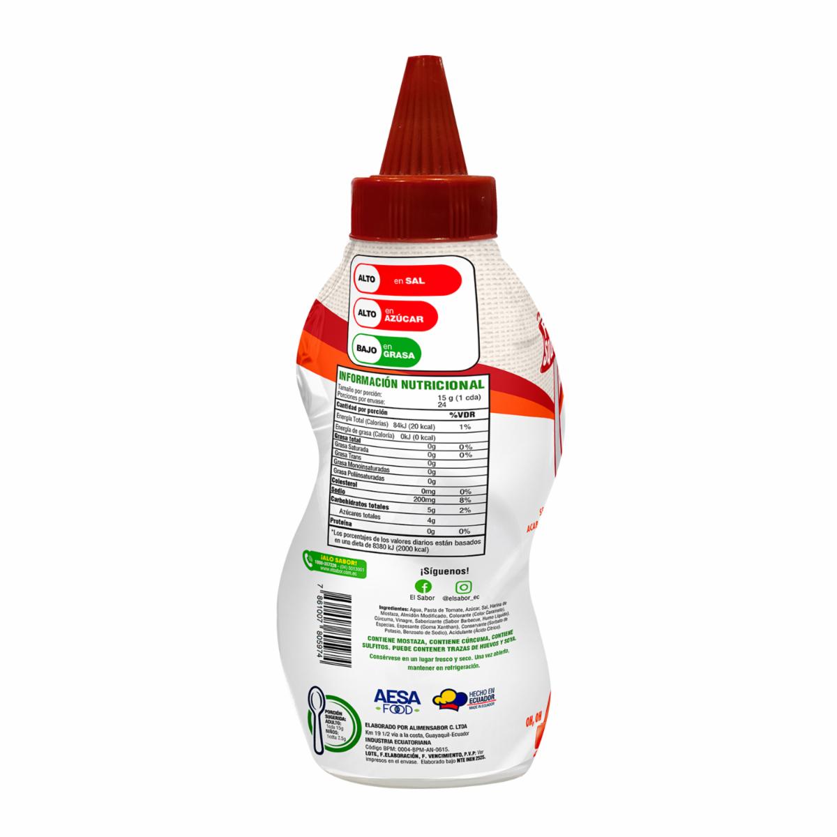 - Agrega un toque delicioso y ahumado a tus carnes y mariscos con la Salsa BBQ de EL SABOR en su presentación de 375 g. Esta salsa, perfectamente equilibrada con sabores intensos y ahumados, es ideal para realzar el sabor de tus platillos a la parrilla o al horno