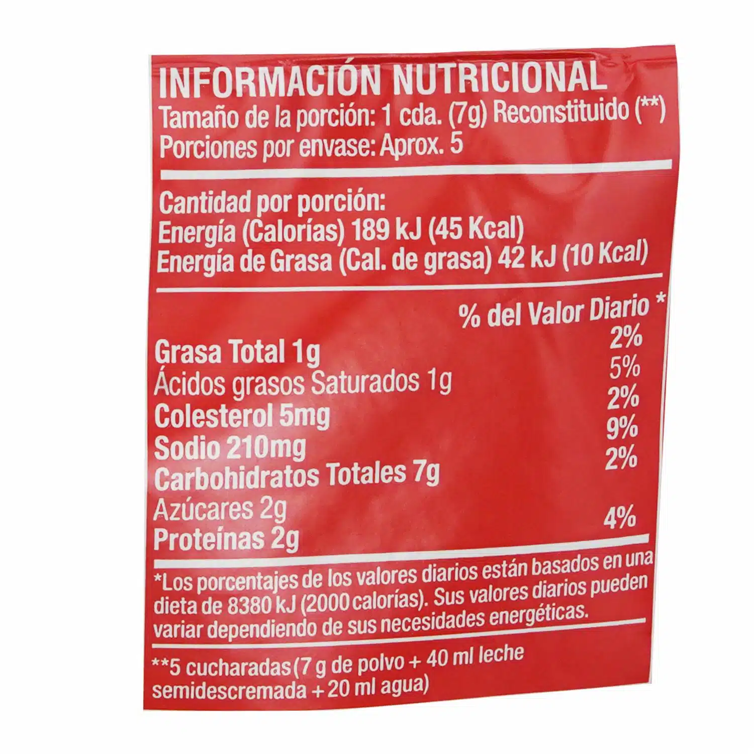 Salsa blanca deshidratada en polvo rinde 5 porciones
