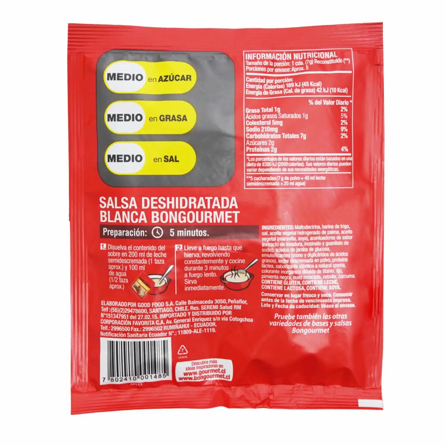 Salsa Blanca BON GOURMET 36 g – BON GOURMET. Disponible en nuestros locales. Precio y stock pueden variar según la tienda.