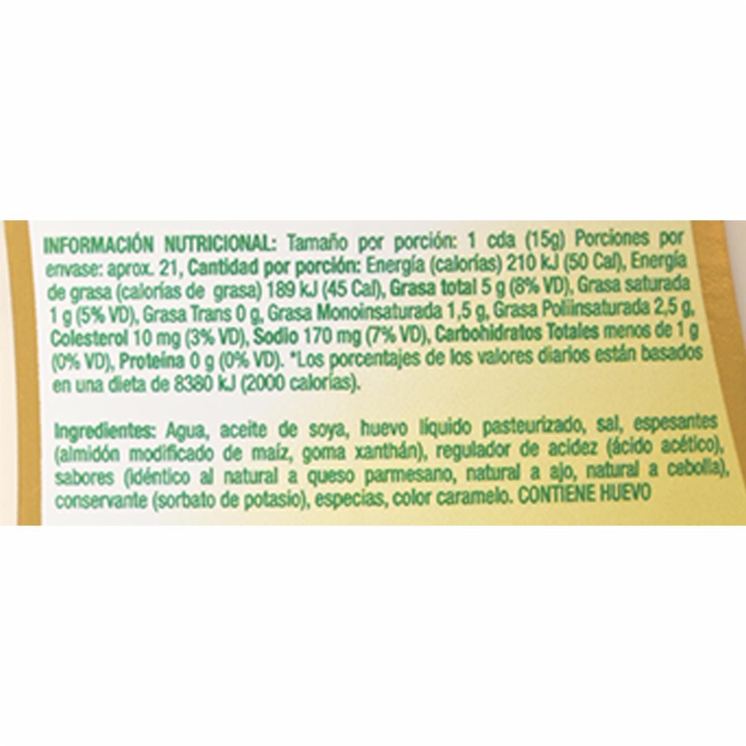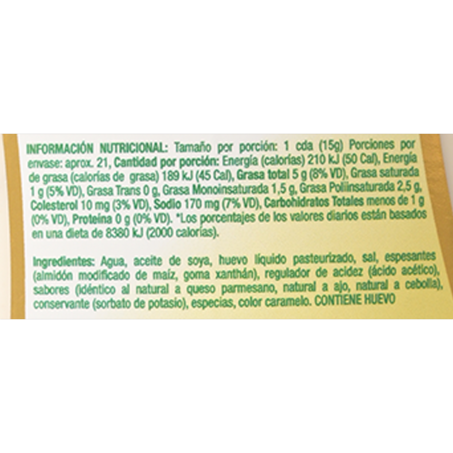 La Salsa César para Aderezo de Gustadina, en su presentación de 320 g, es una salsa cremosa y sabrosa diseñada para ser utilizada como aderezo en ensaladas César y otros platos. La ensalada César es un plato clásico que se compone de lechuga romana, crutones, queso parmesano rallado y aderezo César