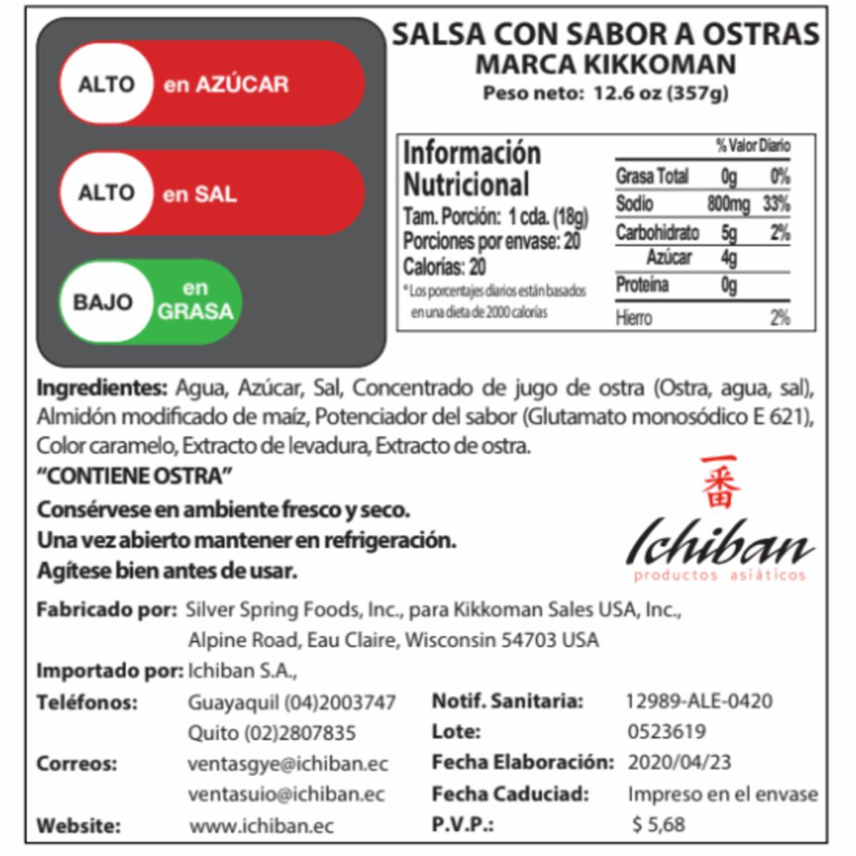 consultando preciosSalsa De Ostras KIKKOMAN 357 Gramos – KIKKOMAN. Disponible en nuestros locales. Precio y stock pueden variar según la tienda.
