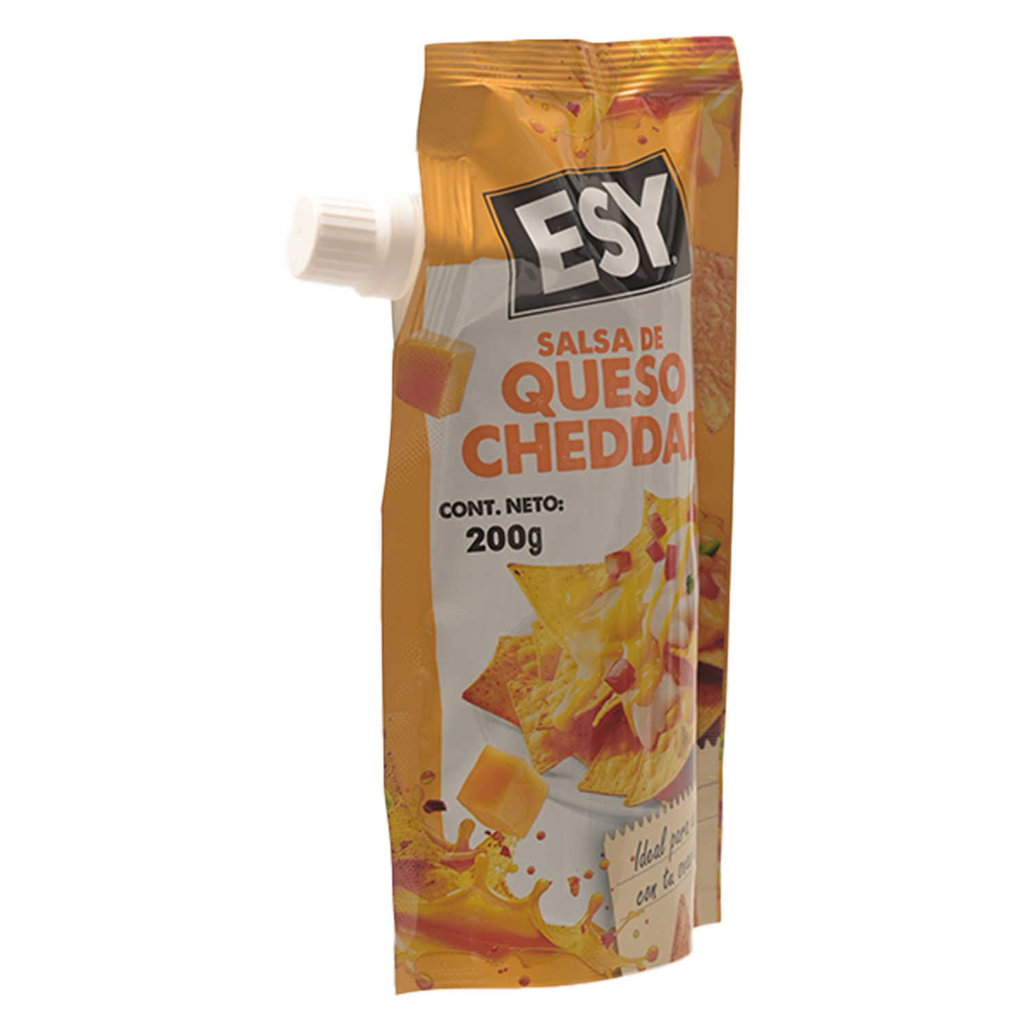 - Agrega cremosidad y sabor a tus platos con la salsa de queso Cheddar ESY. Perfecta para nachos, pastas, hamburguesas o como dip, ofrece un sabor intenso y delicioso que hace que cada bocado sea irresistible. Convierte tus comidas en momentos llenos de sabor y disfrute
