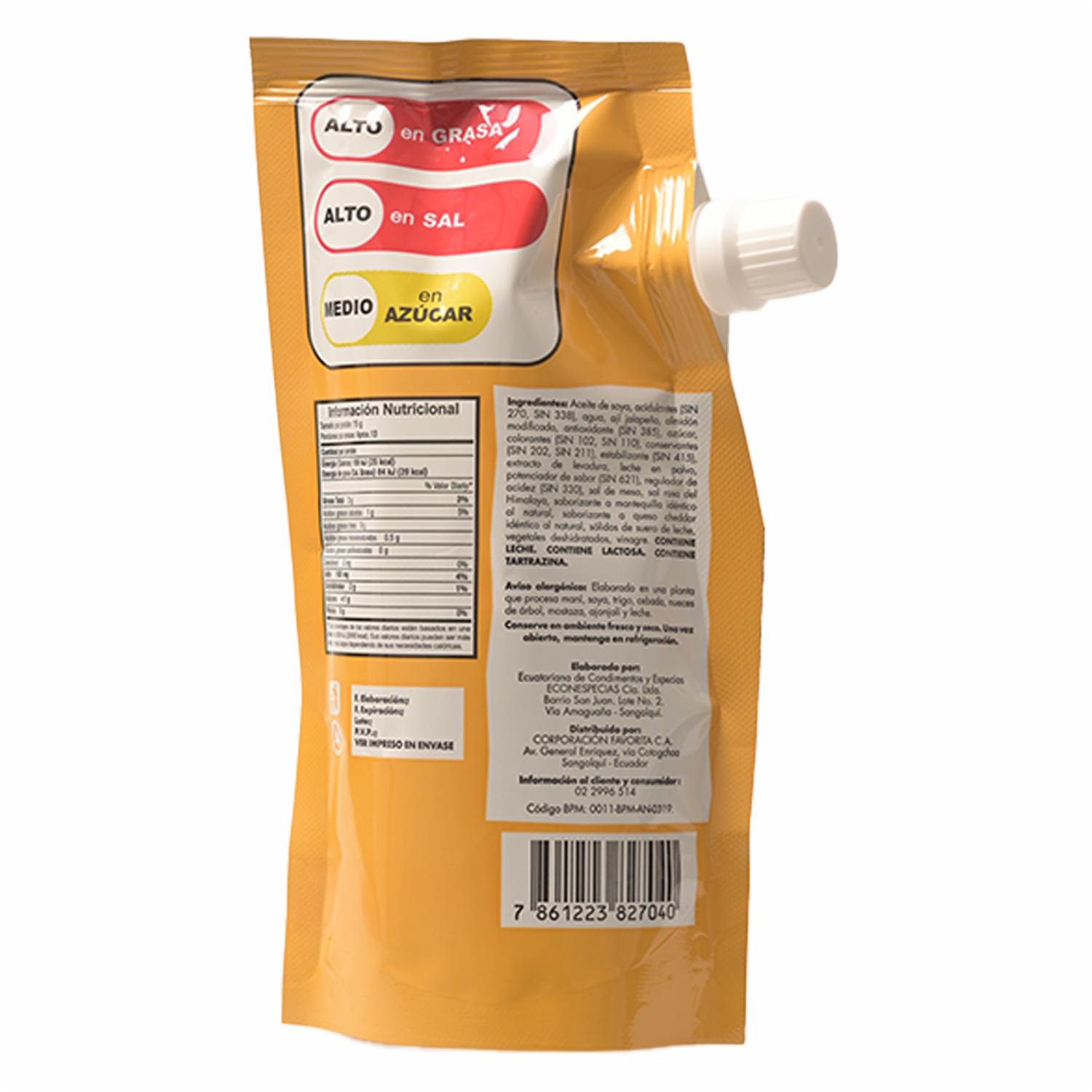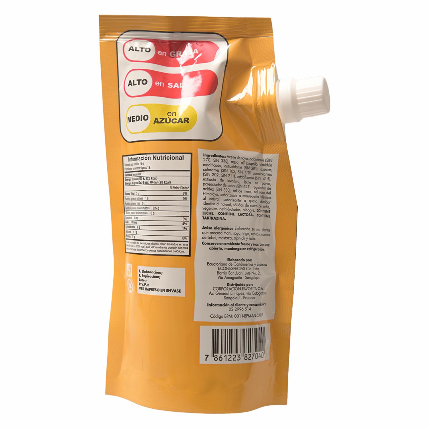 Agrega cremosidad y sabor a tus platos con la salsa de queso Cheddar ESY. Perfecta para nachos, pastas, hamburguesas o como dip, ofrece un sabor intenso y delicioso que hace que cada bocado sea irresistible. Convierte tus comidas en momentos llenos de sabor y disfrute