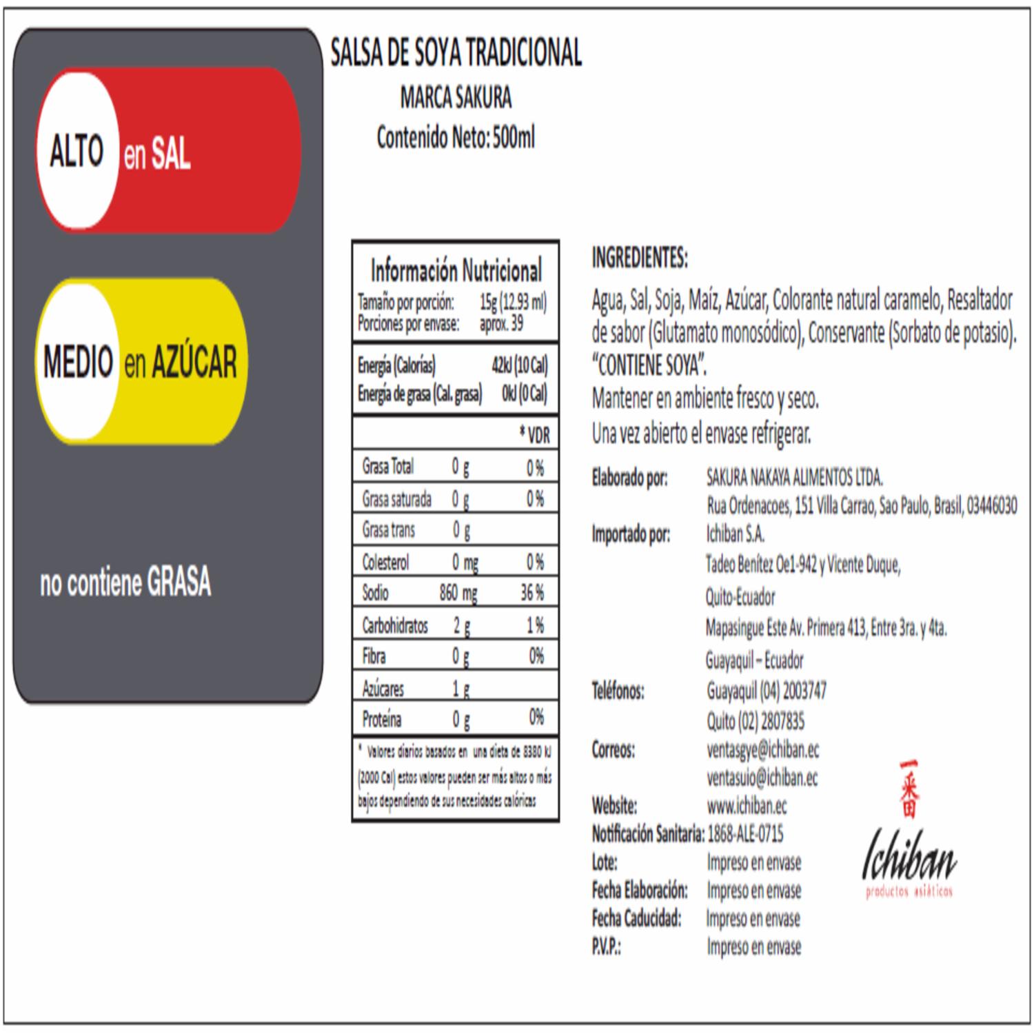 Salsa De Soya Libre De Gluten SAKURA 500 Ml