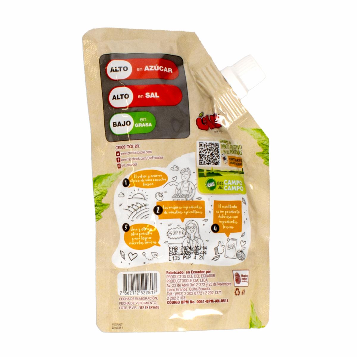 - Con su textura suave y su aroma irresistible, la salsa de tomate OLE es el compañero perfecto para una amplia variedad de platos. Desde pasta hasta pizza, desde pollo hasta pescado, esta salsa versátil añade un toque de autenticidad y sabor casero a cualquier comida